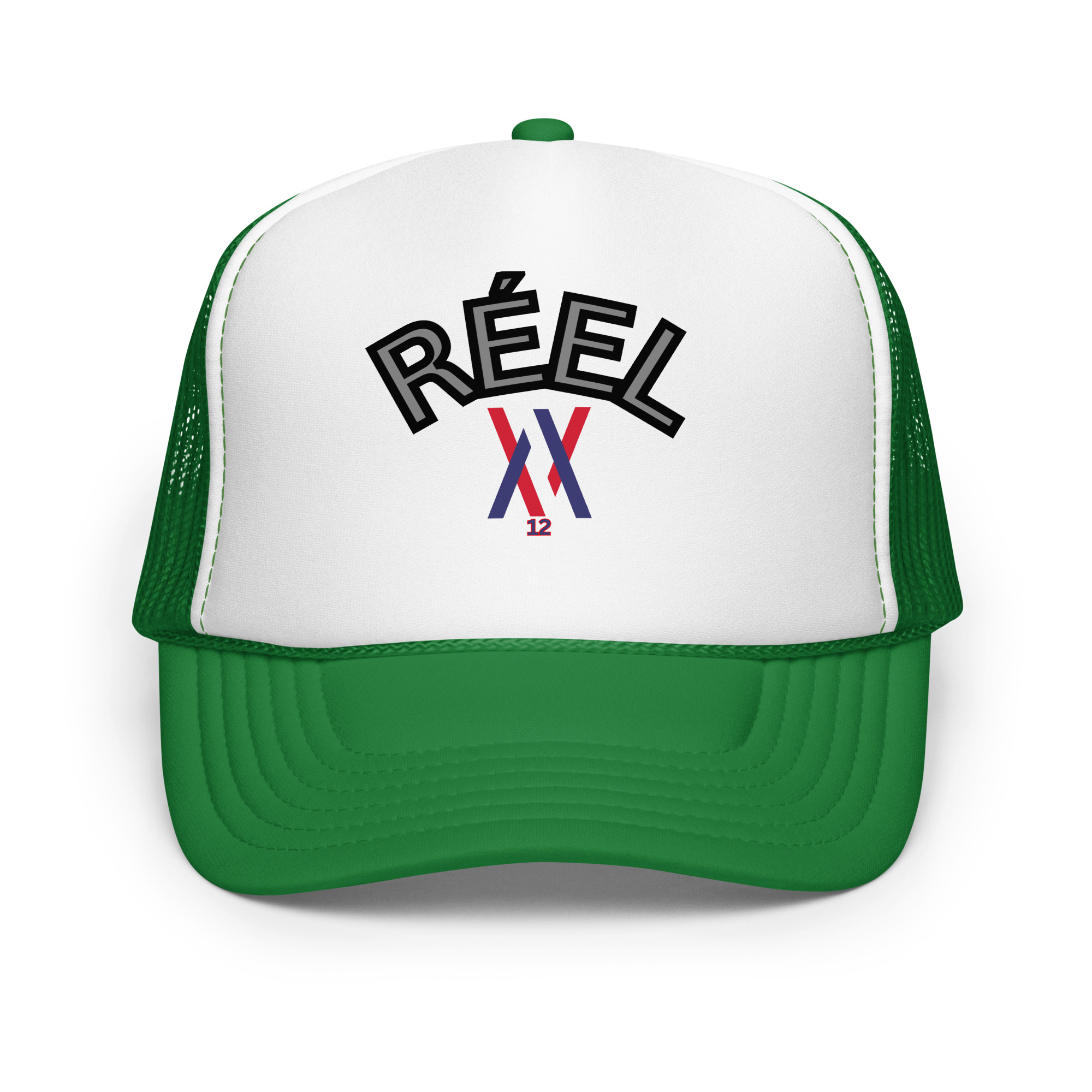 Je choisis cette casquette trucker moussé parce que Réel ancre ma direction quand tout sonne faux. Simple clair constant avec Réel argent contrôle clarté et économie comme attitude. RÉEL NO 12 représente une présence vraie sans façade.