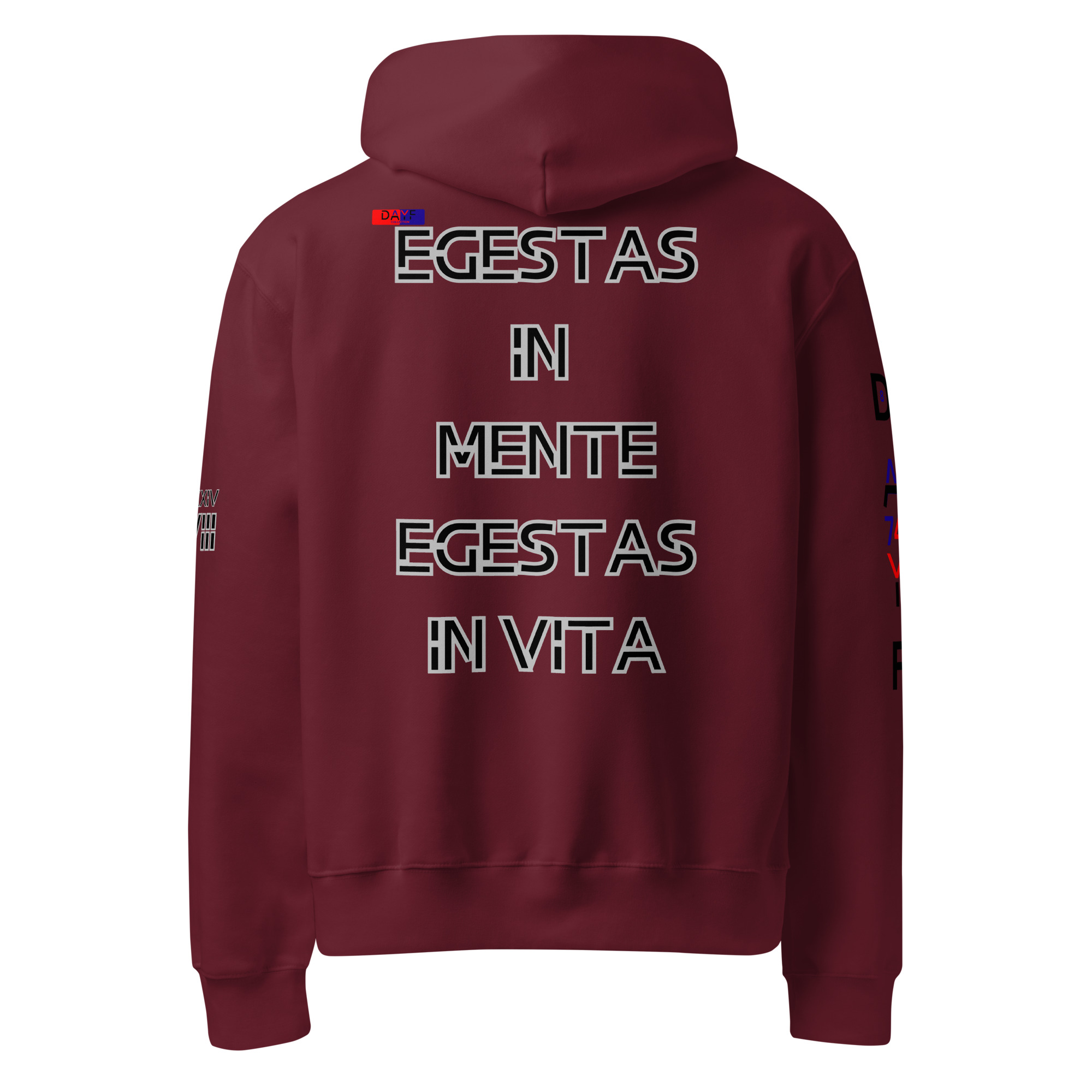 I choose this oversized heavyweight hoodie because EGESTAS IN MENTE EGESTAS IN VITA on the back reflects how I see life. Honest simple steady with budget money control clarity and saving shaping my choices. A strong clean back print that stays real without noise.