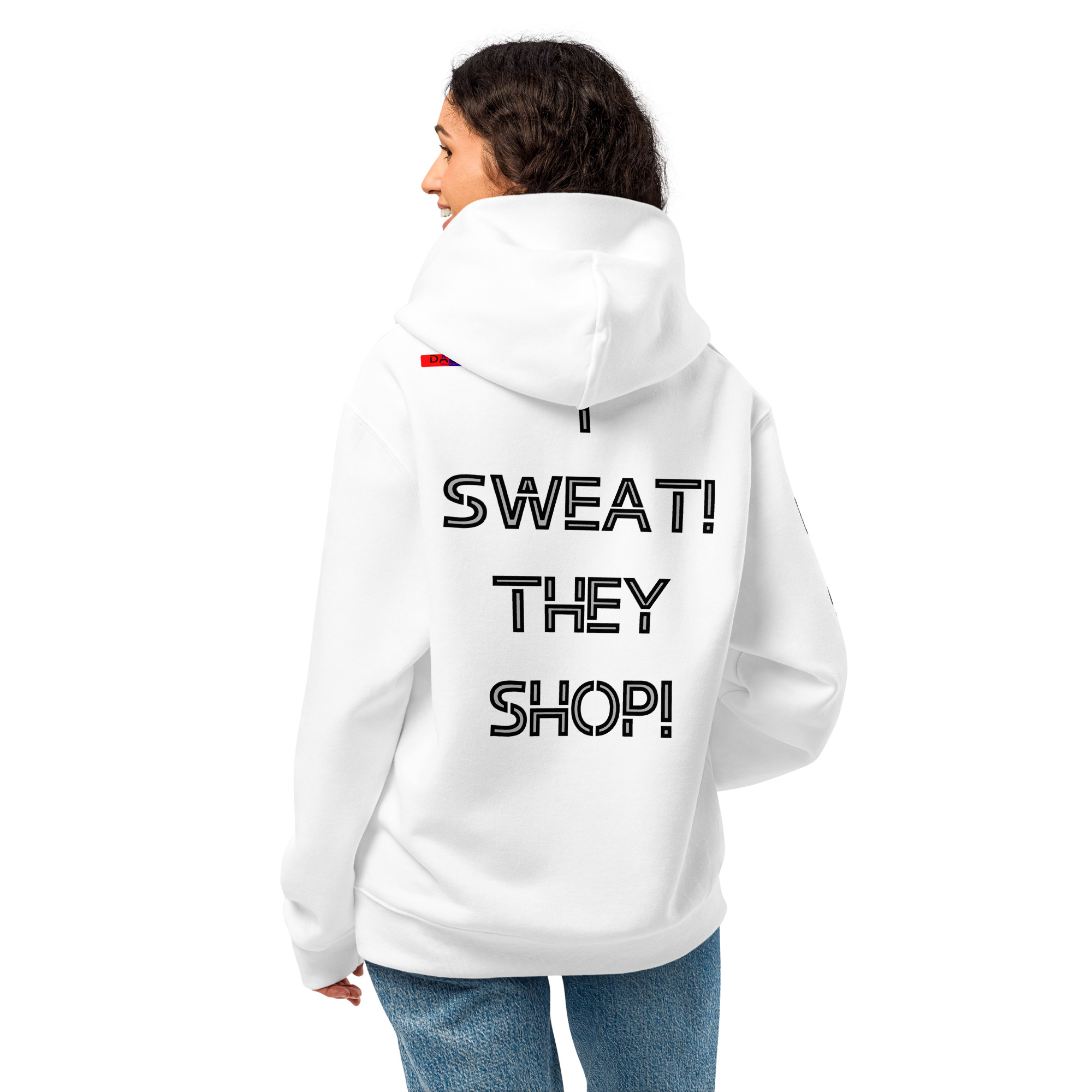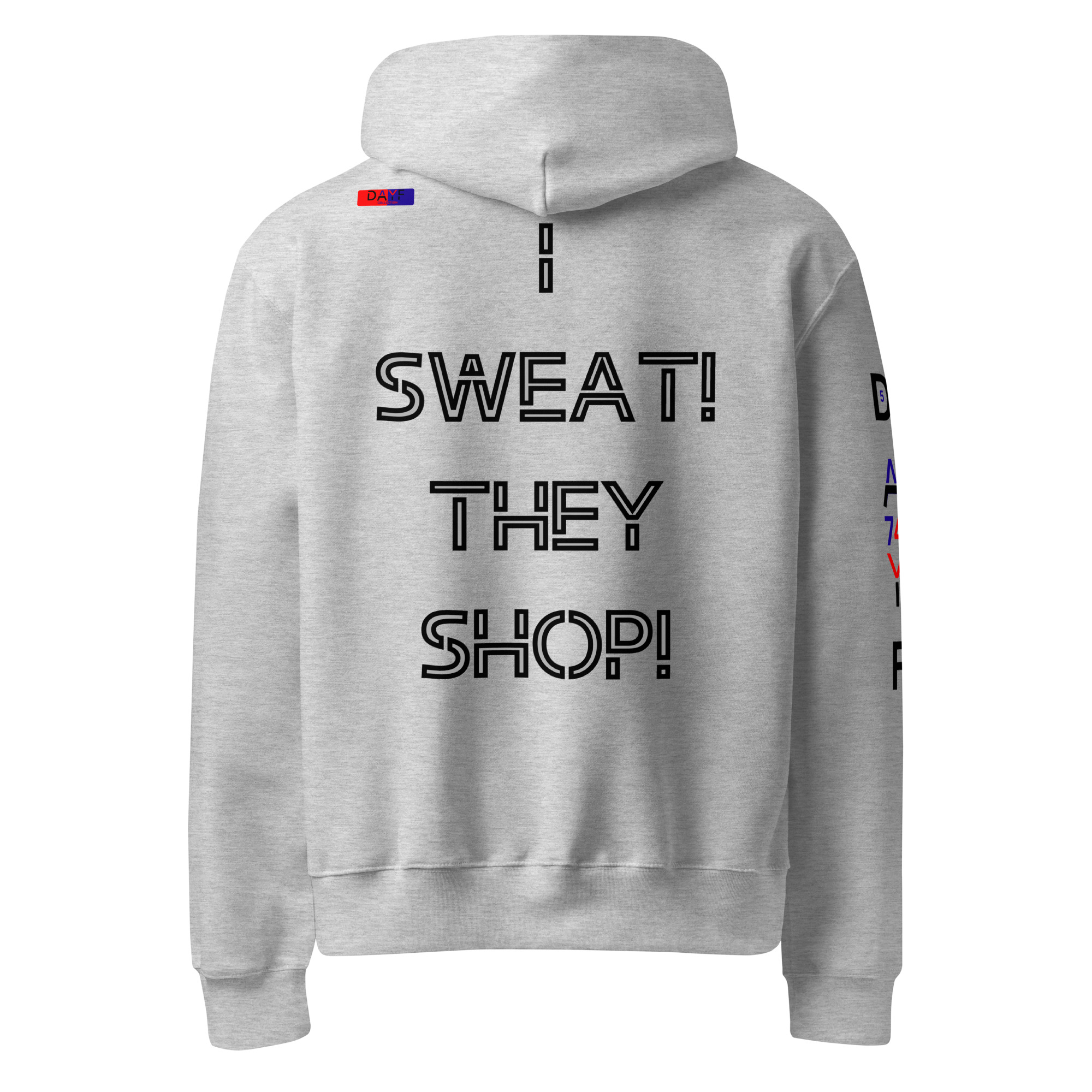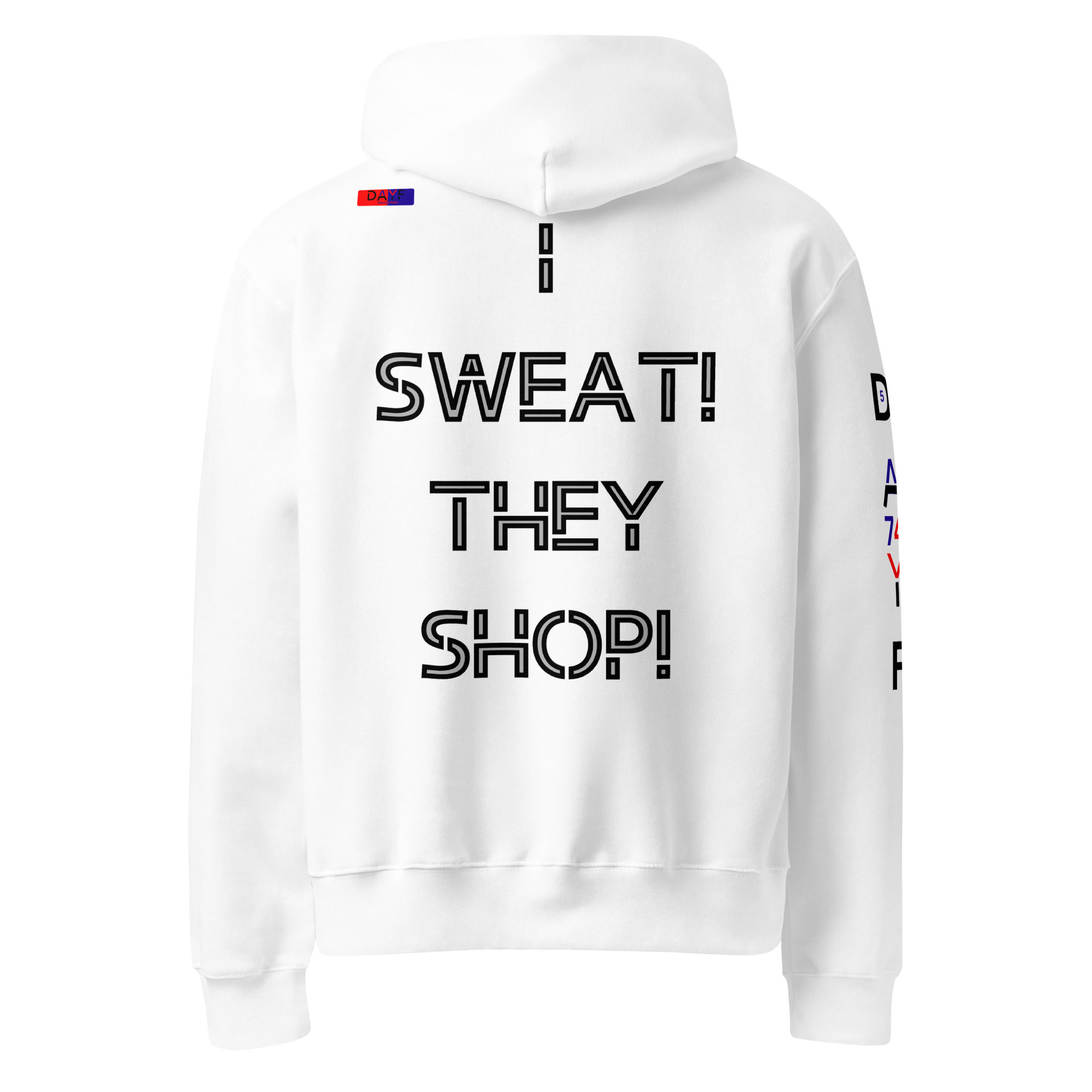 I wear this oversized heavyweight hoodie because I SWEAT THEY SHOP on the back hits exactly how life feels. Honest simple with budget money clarity control and saving. A clean piece that keeps my attitude steady.