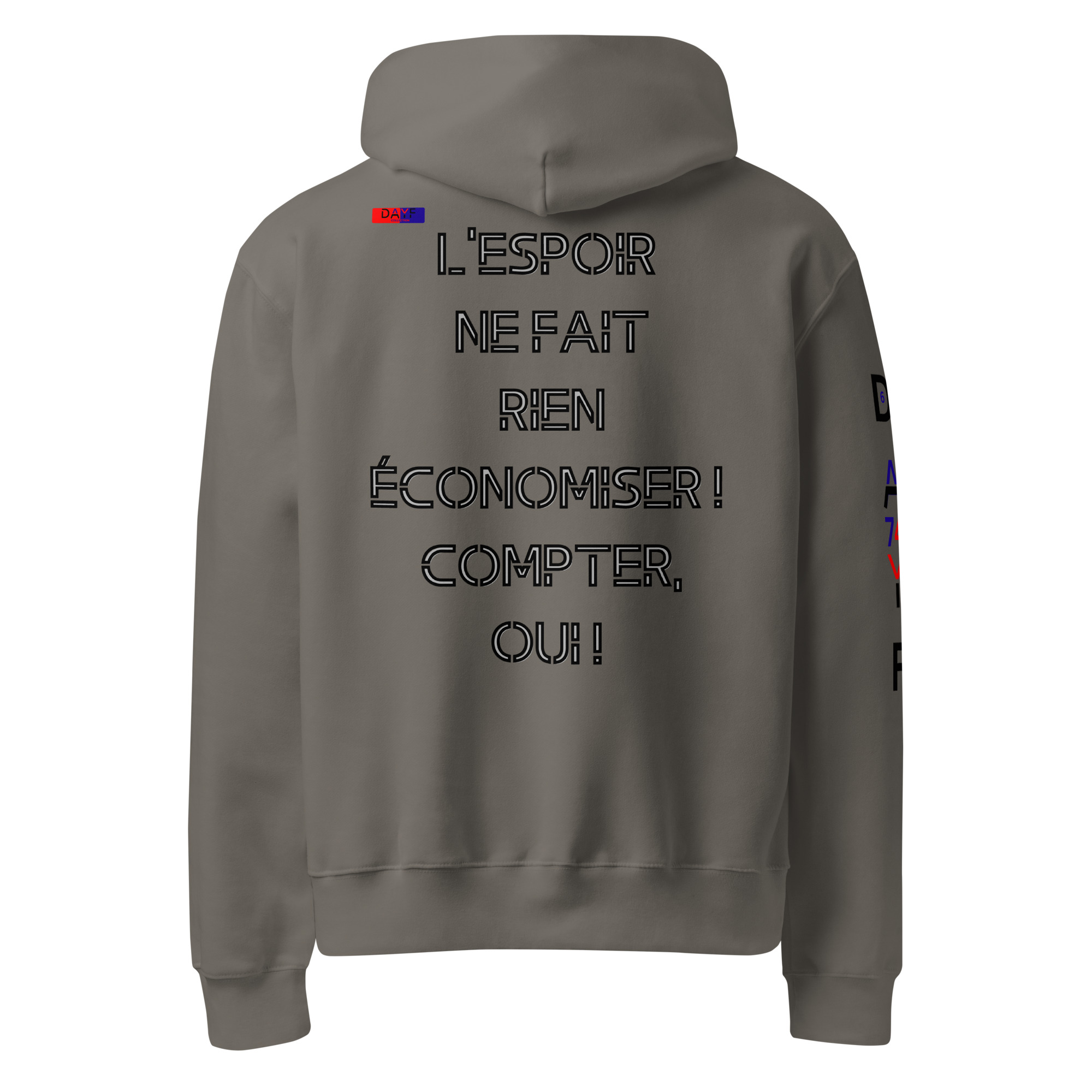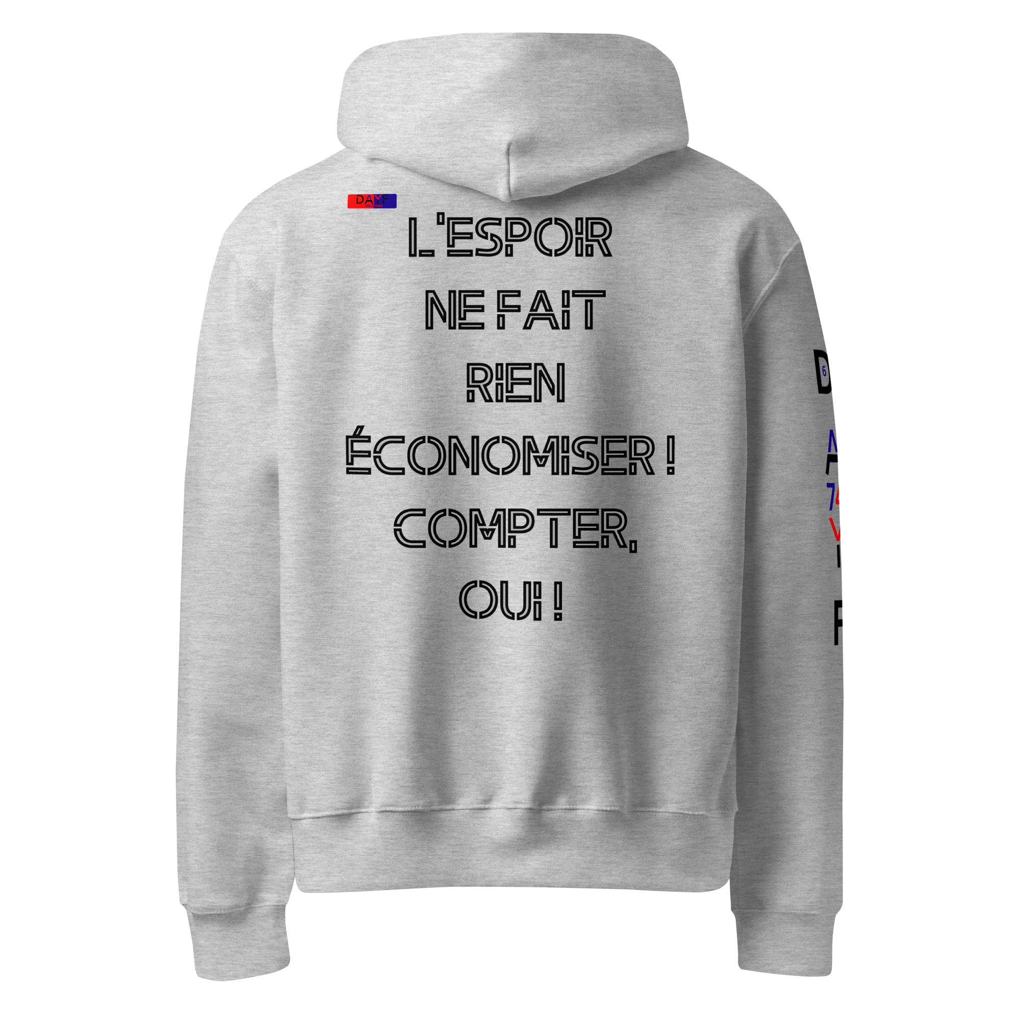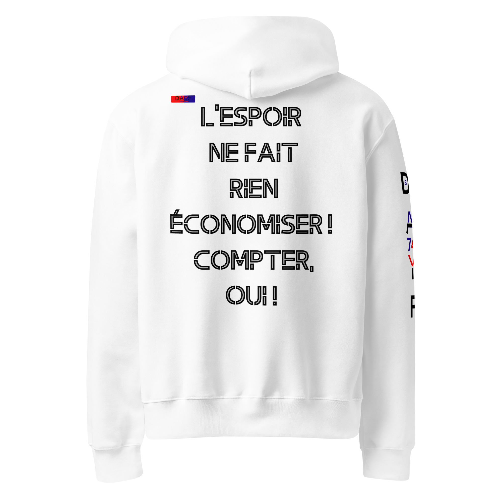 Dayf Sweat capuche LESPOIR NE FAIT RIEN ECONOMISER COMPTER OUI Design original Dayf FR Collection Numero 6 Oversize Epais Dos