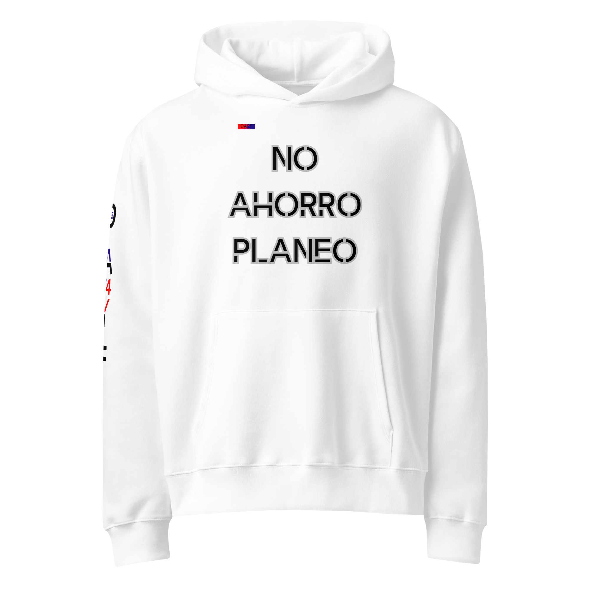 Dayf oversize heavyweight hoodie con el texto espanol No Ahorro Planeo en el frenteOriginal Dayf Design ES Collection Number 15 Oversize Heavyweight Hoodie Frente No Ahorro Planeo