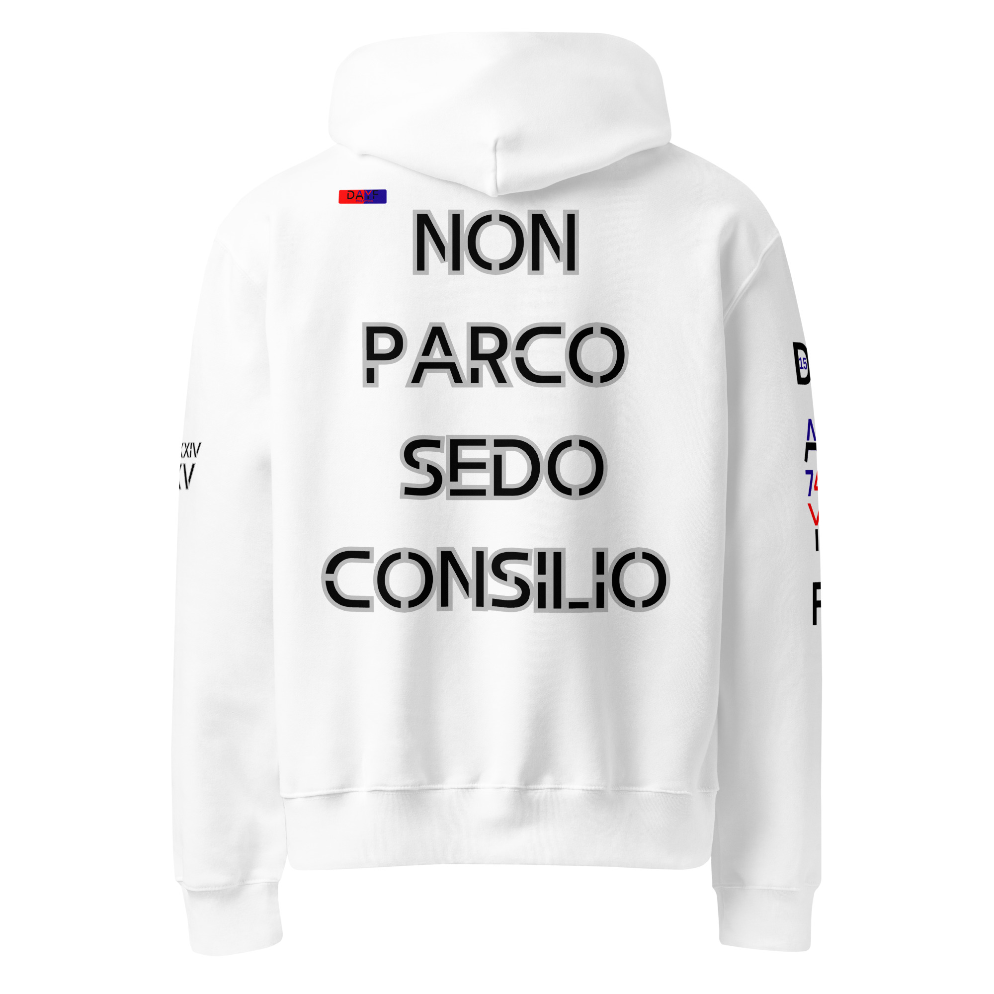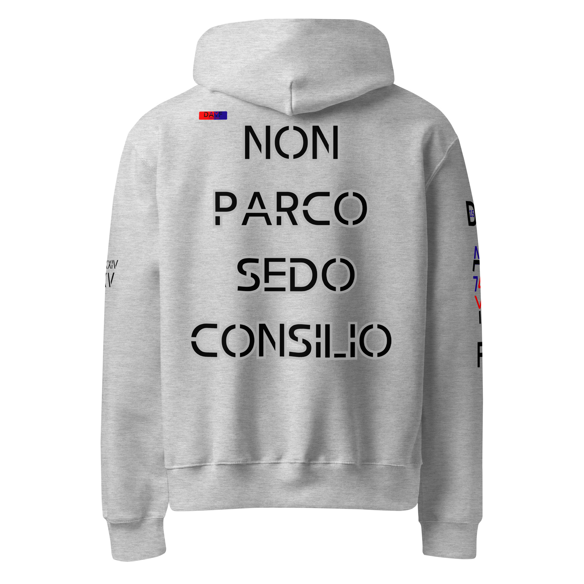 I choose this oversized heavyweight hoodie because NON PARCO SEDO CONSILIO on the back reflects how I move through life. Honest simple steady with budget money control clarity and saving shaping my choices. A strong clean back print that stays true without noise.