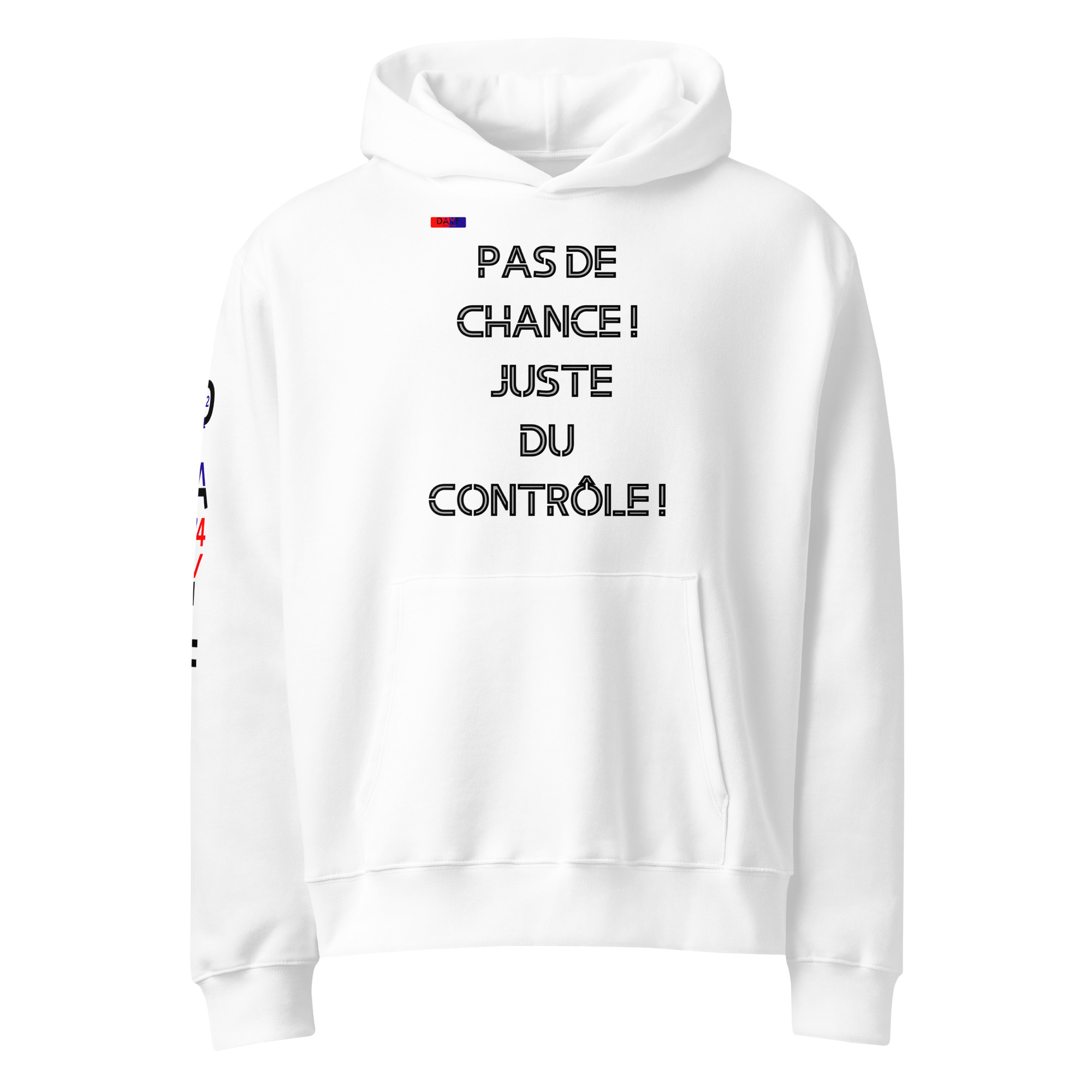 Je choisis ce sweat epais oversize parce que PAS DE CHANCE JUSTE DU CONTROLE sur le devant correspond a ma facon de vivre. Honnete calme clair avec budget argent controle clarte et economie. Une piece solide qui reste vraie et directe.