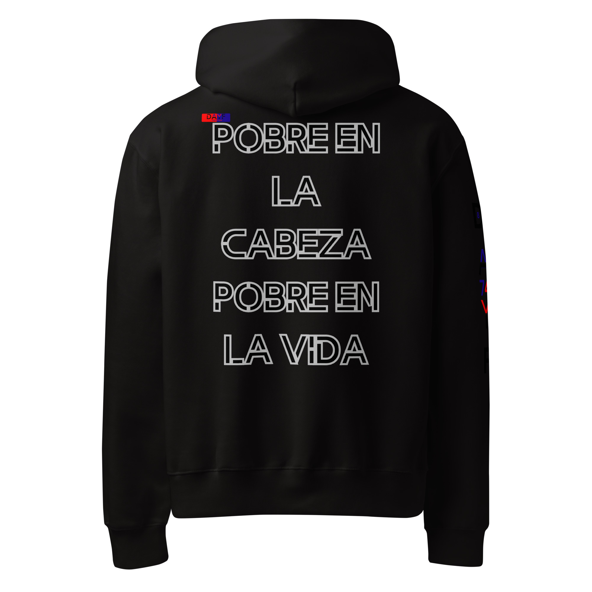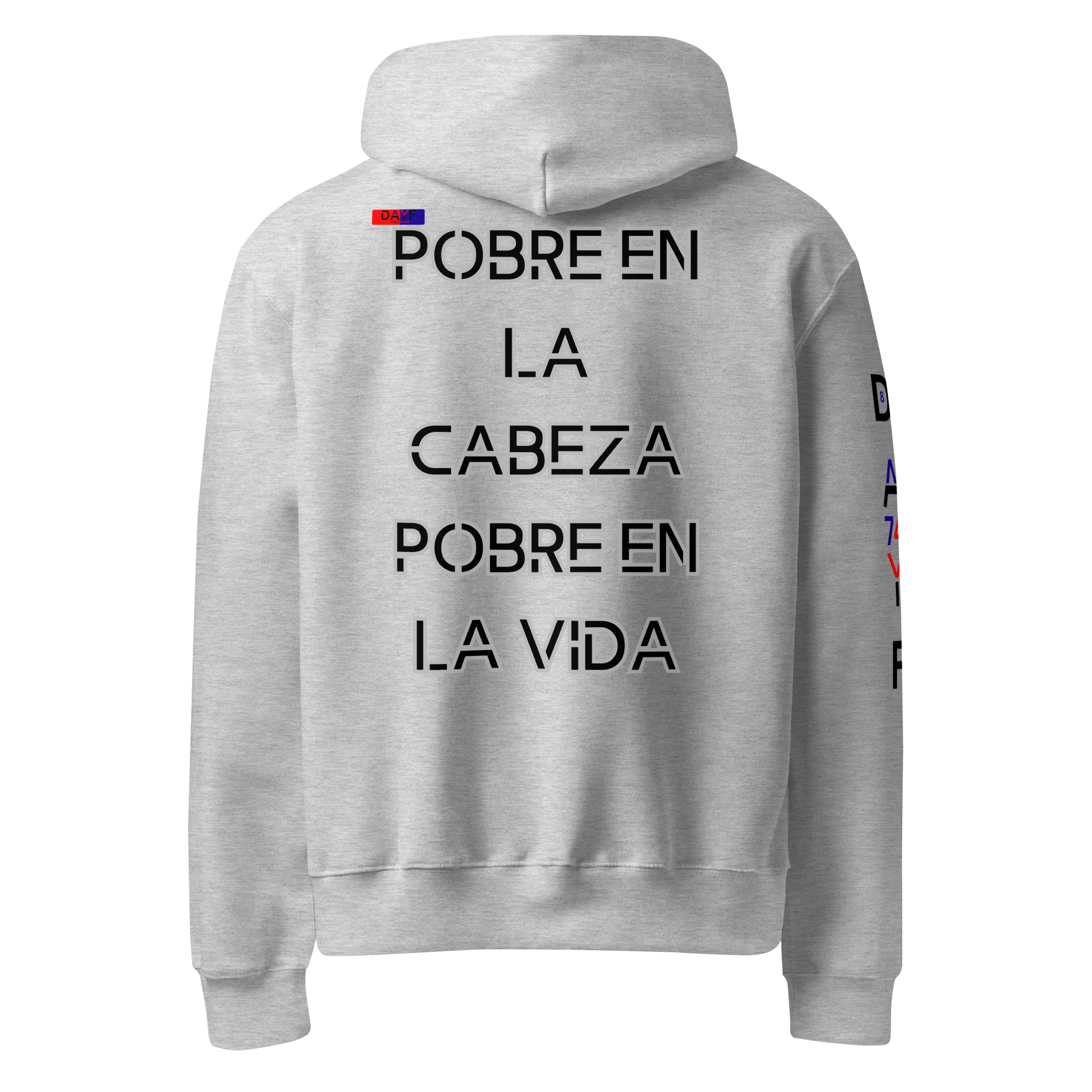 Dayf oversize heavyweight hoodie con el texto espanol Pobre En La Cabeza Pobre En La Vida en la espaldaOriginal Dayf Design ES Collection Number 8 Oversize Heavyweight Hoodie Espalda Pobre En La Cabeza Pobre En La Vida