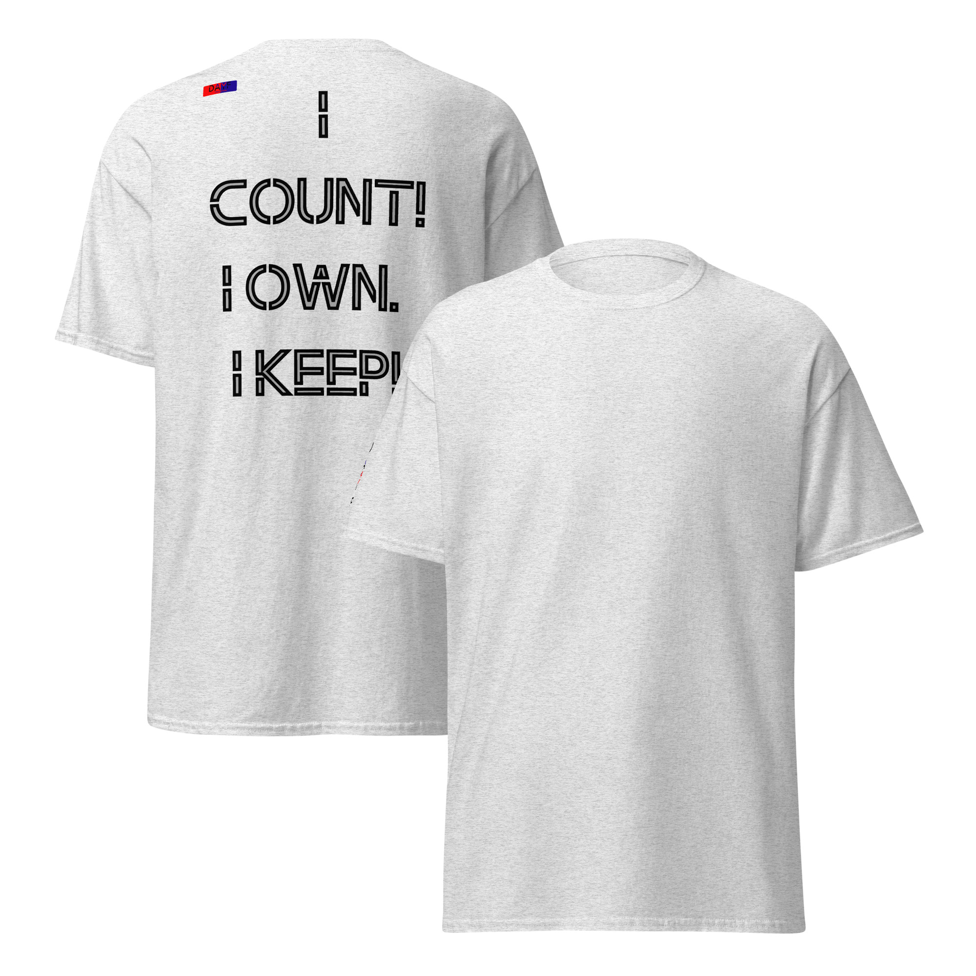 I choose this back print because I COUNT I OWN I KEEP shows exactly how I move through life. Honest steady with budget money clarity control and saving. A clean piece that keeps my mindset sharp.
