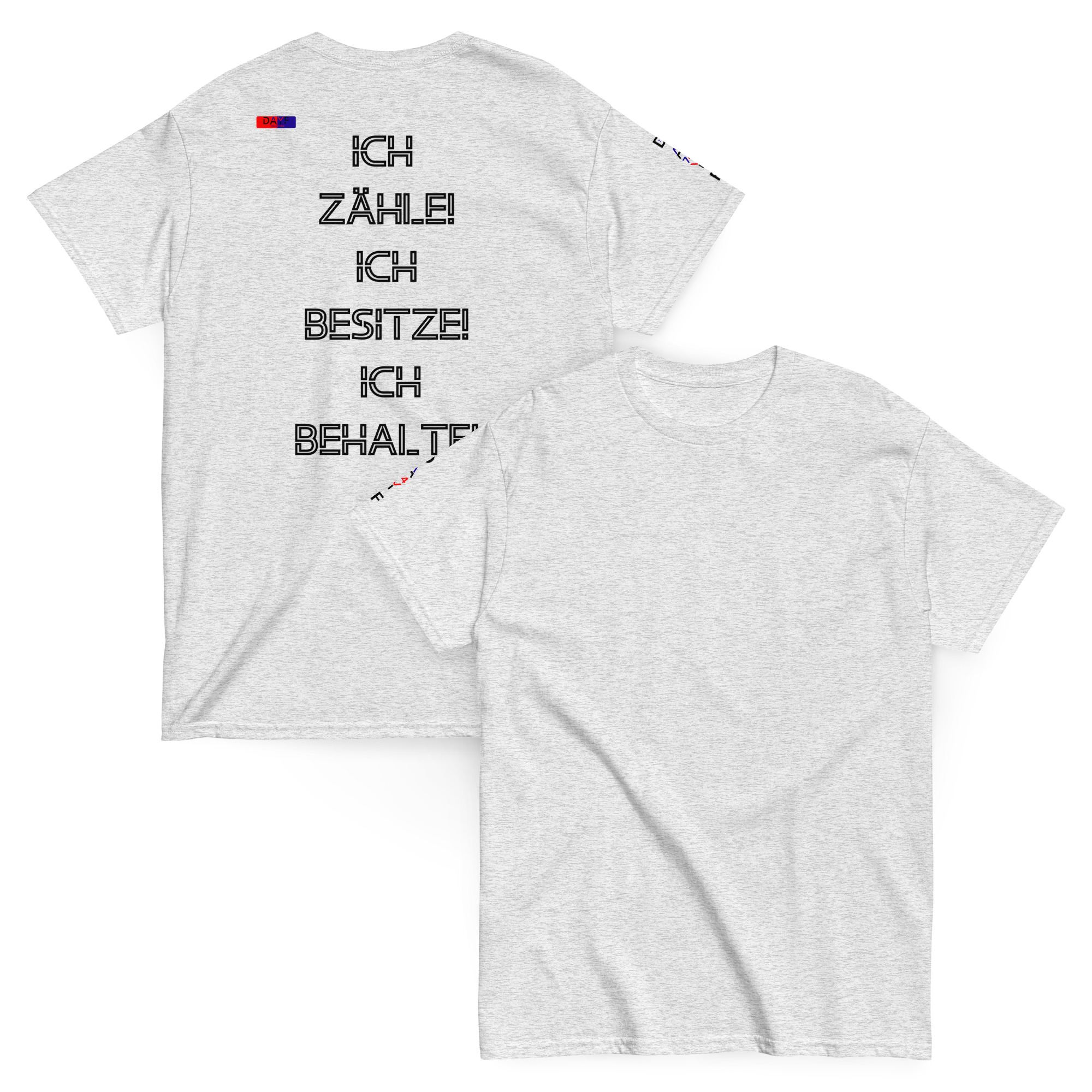 Dayf Shirt ICH ZAEHLE ICH BESITZE ICH BEHALTE Original Dayf Design DE Collection Nummer 7 Classic T Shirt RueckseiteDayf Shirt ICH ZAEHLE ICH BESITZE ICH BEHALTE Original Dayf Design DE Collection Nummer 7 Classic T Shirt Rueckseite