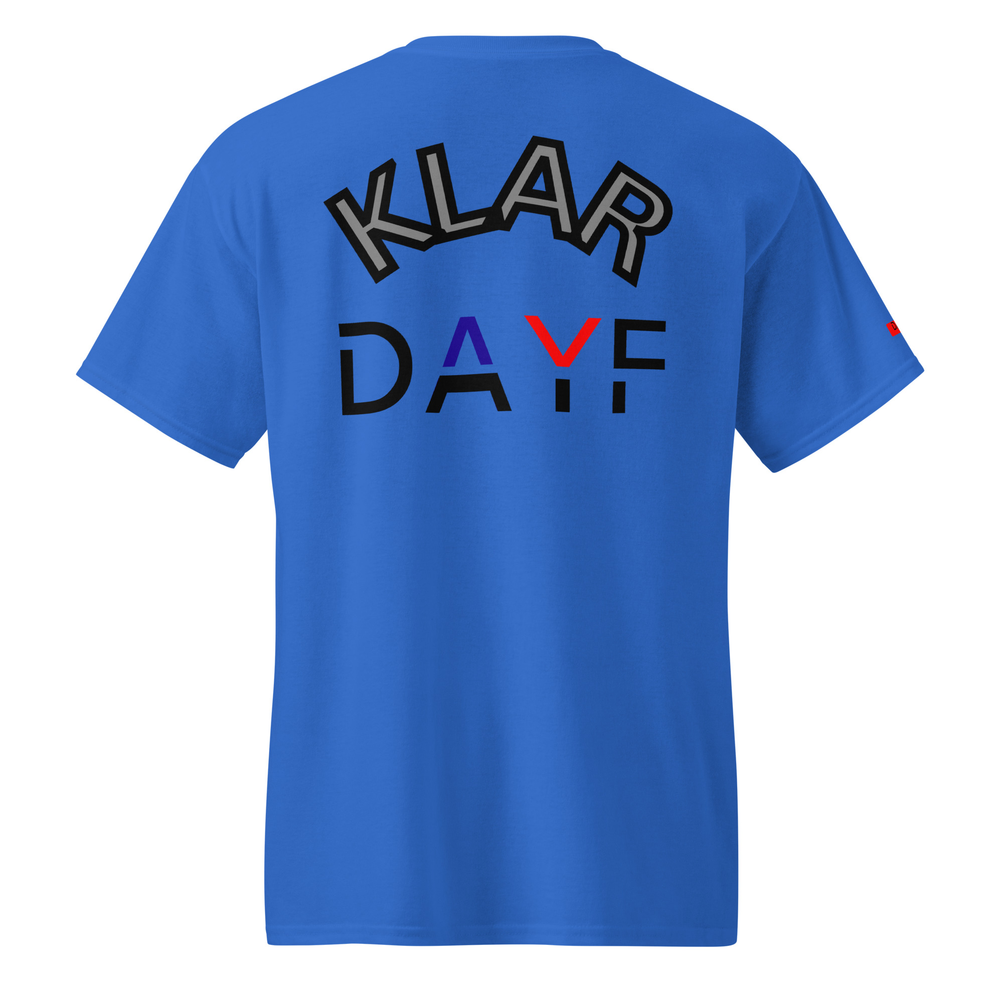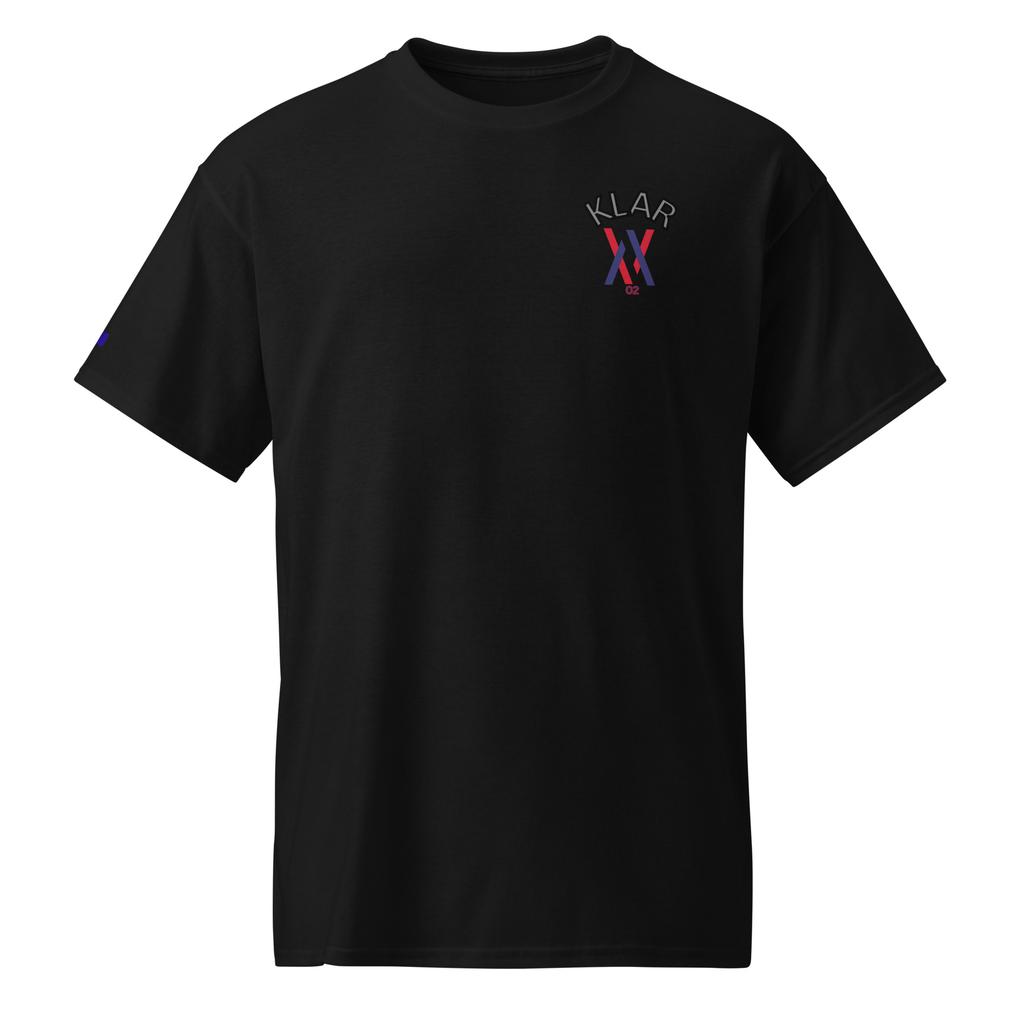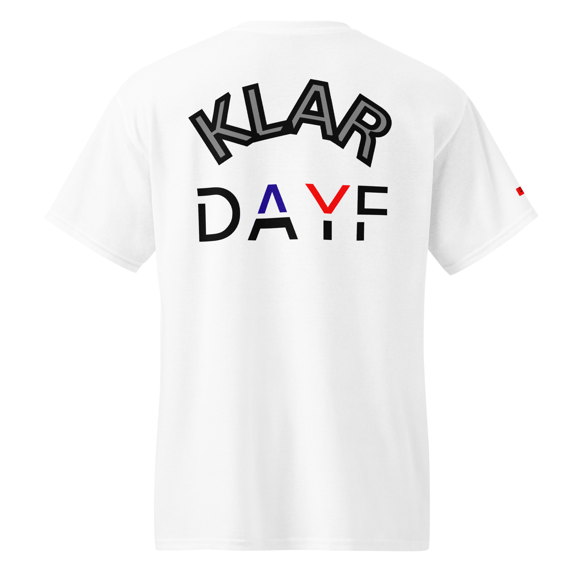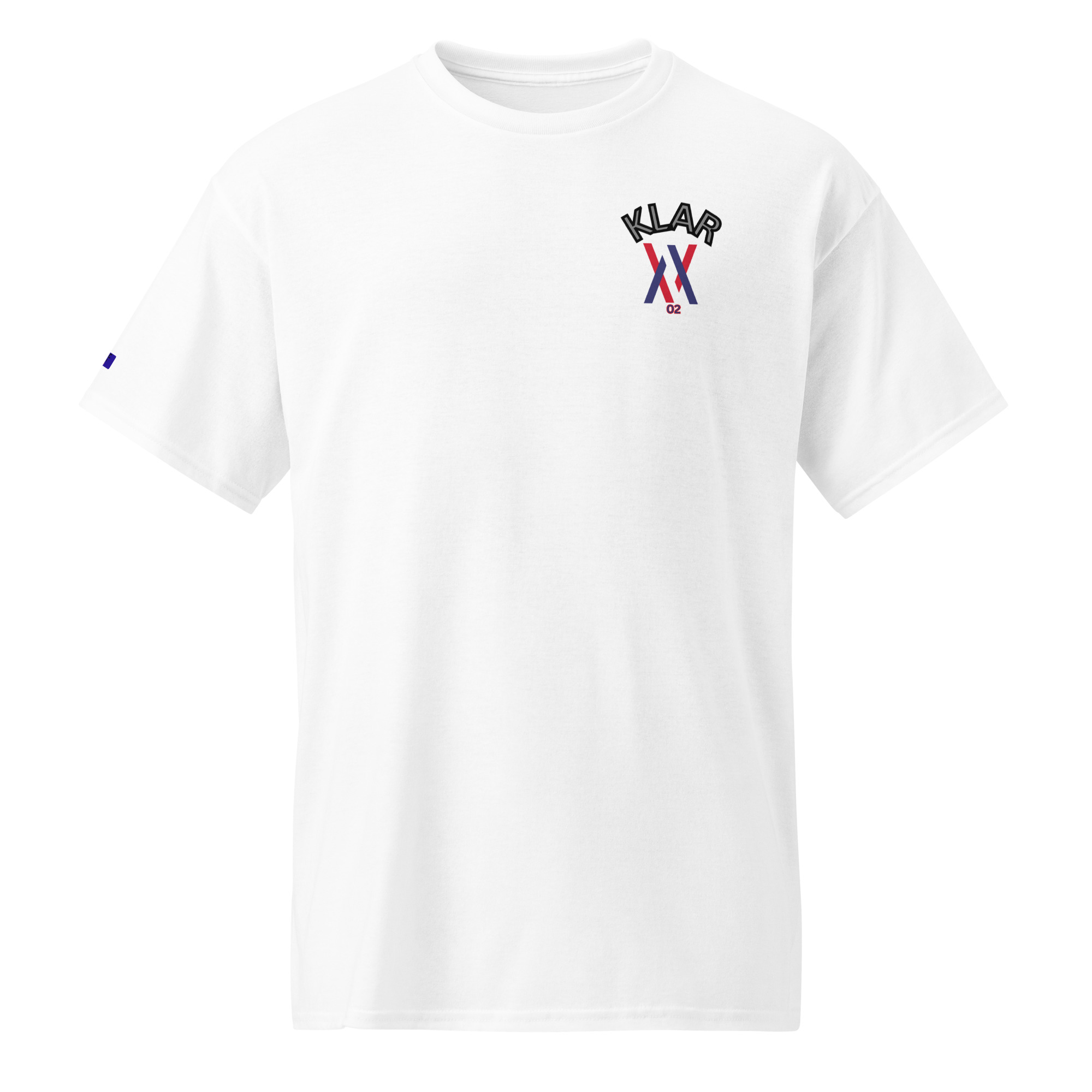 Das No 02 Shirt trägt das Wort Klar vorne und hinten.