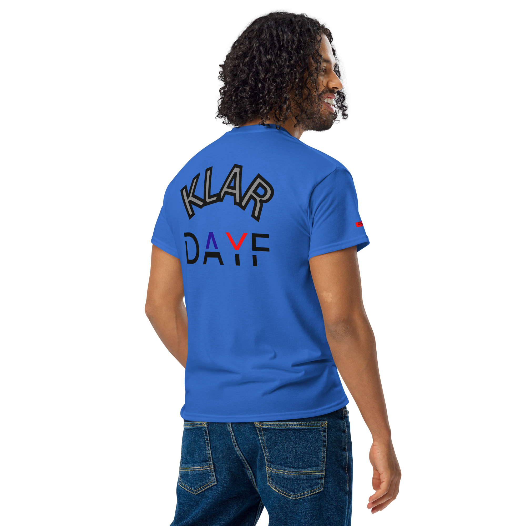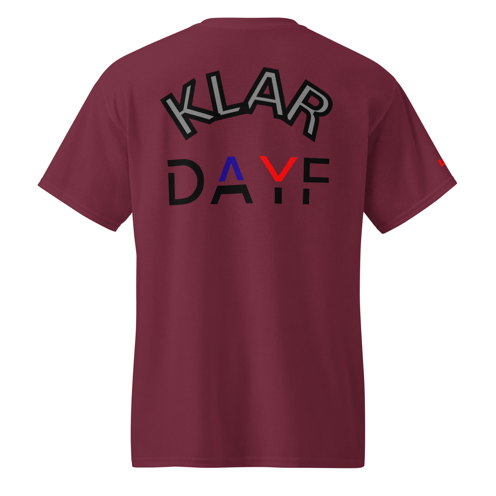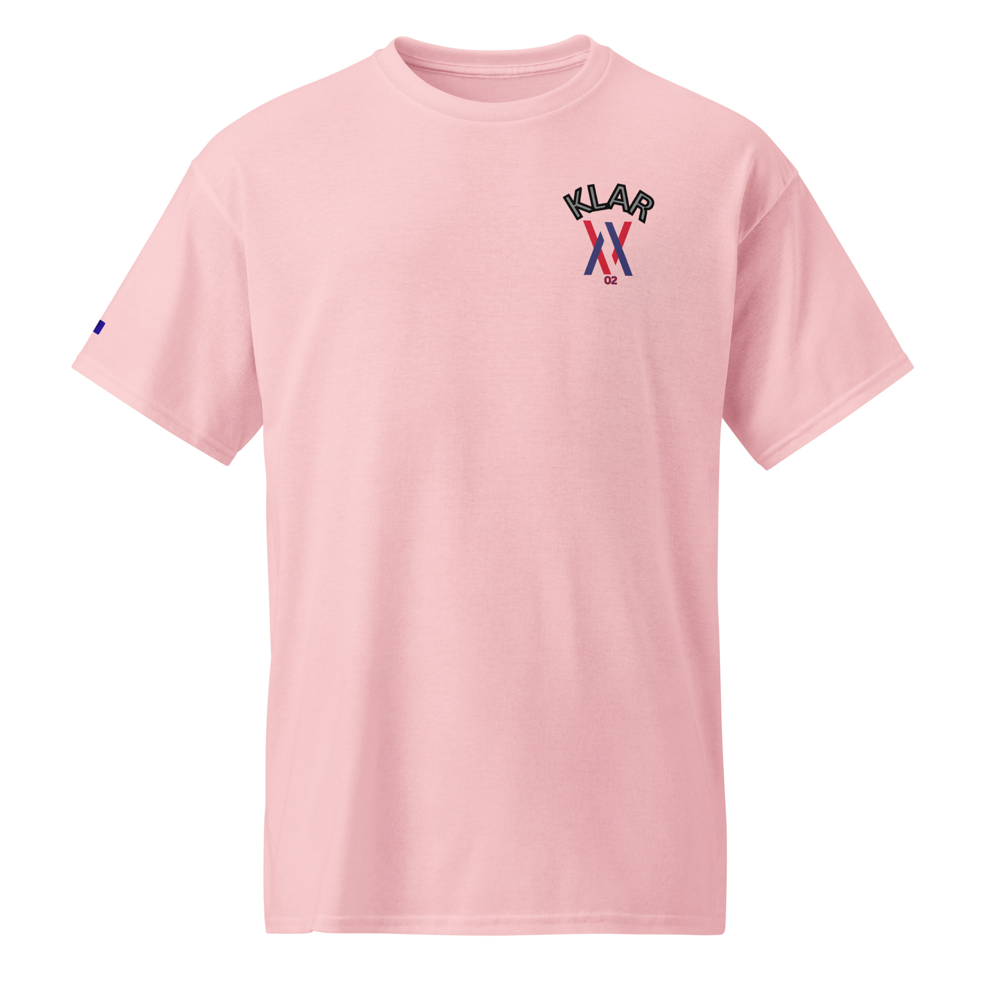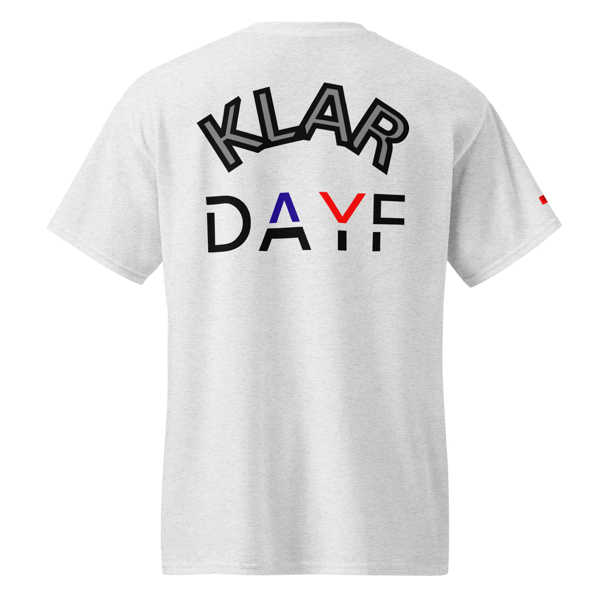 Das No 02 Shirt trägt das Wort Klar vorne und hinten.