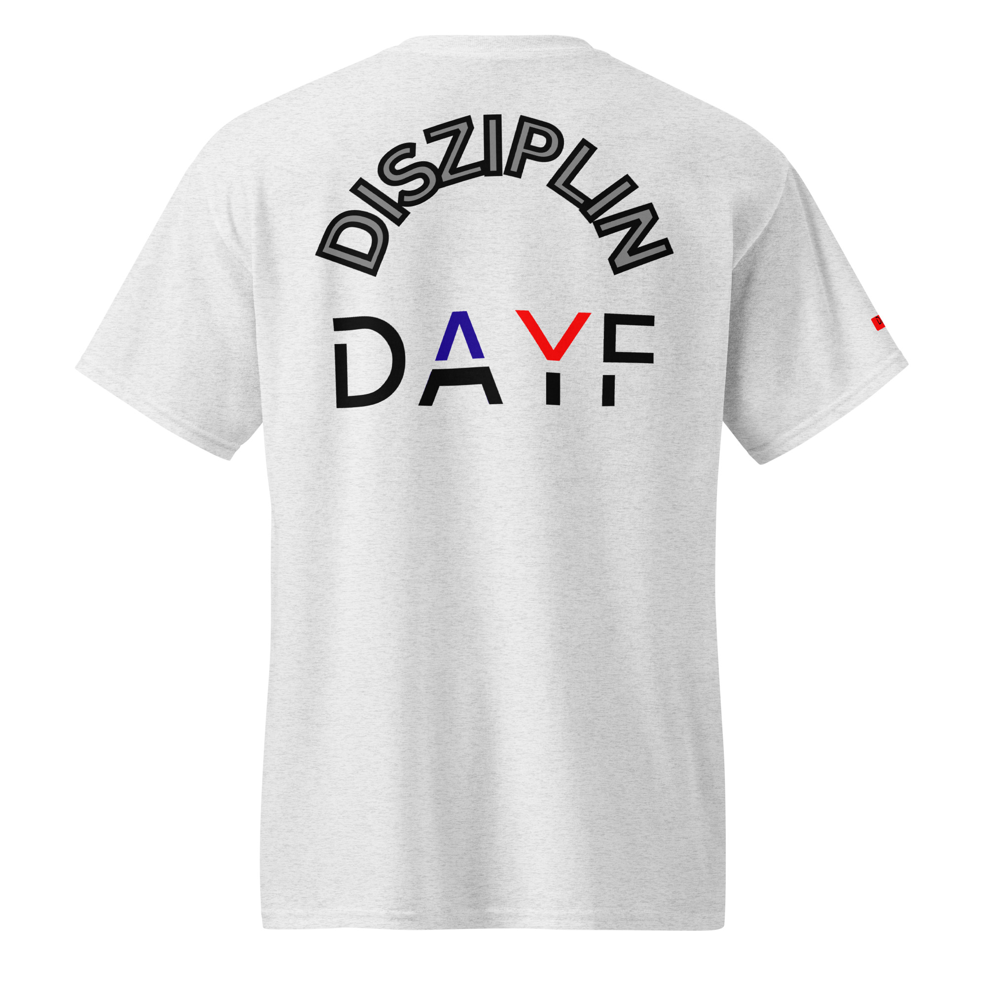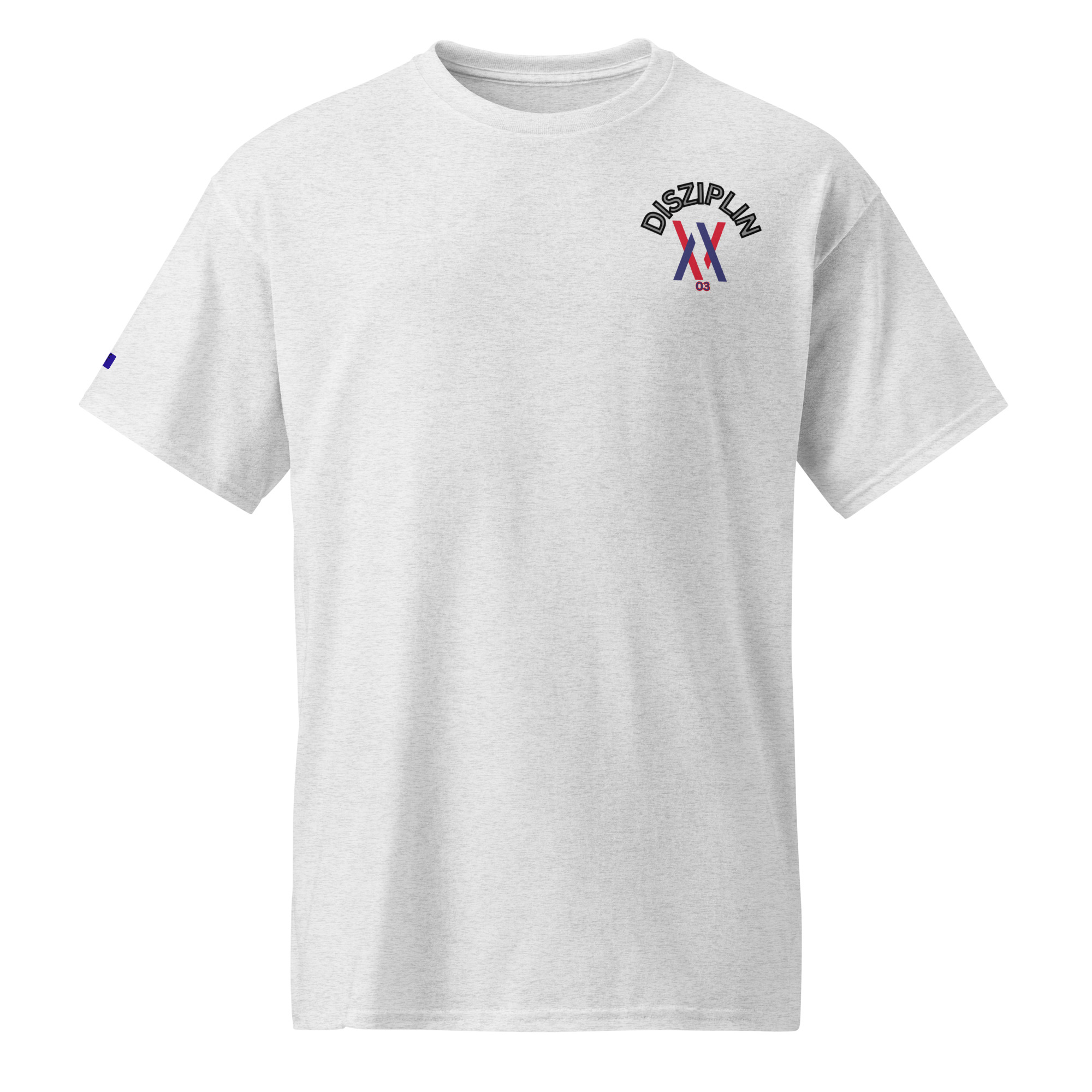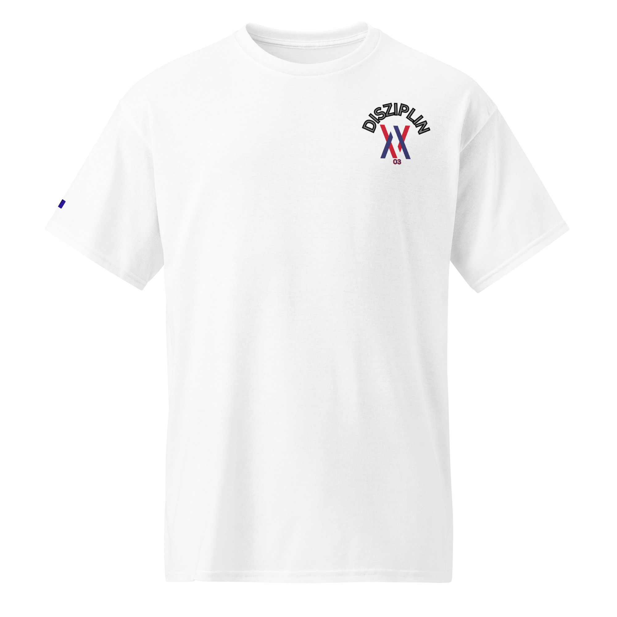 Das No 03 Shirt zeigt das Wort Disziplin vorne und hinten.