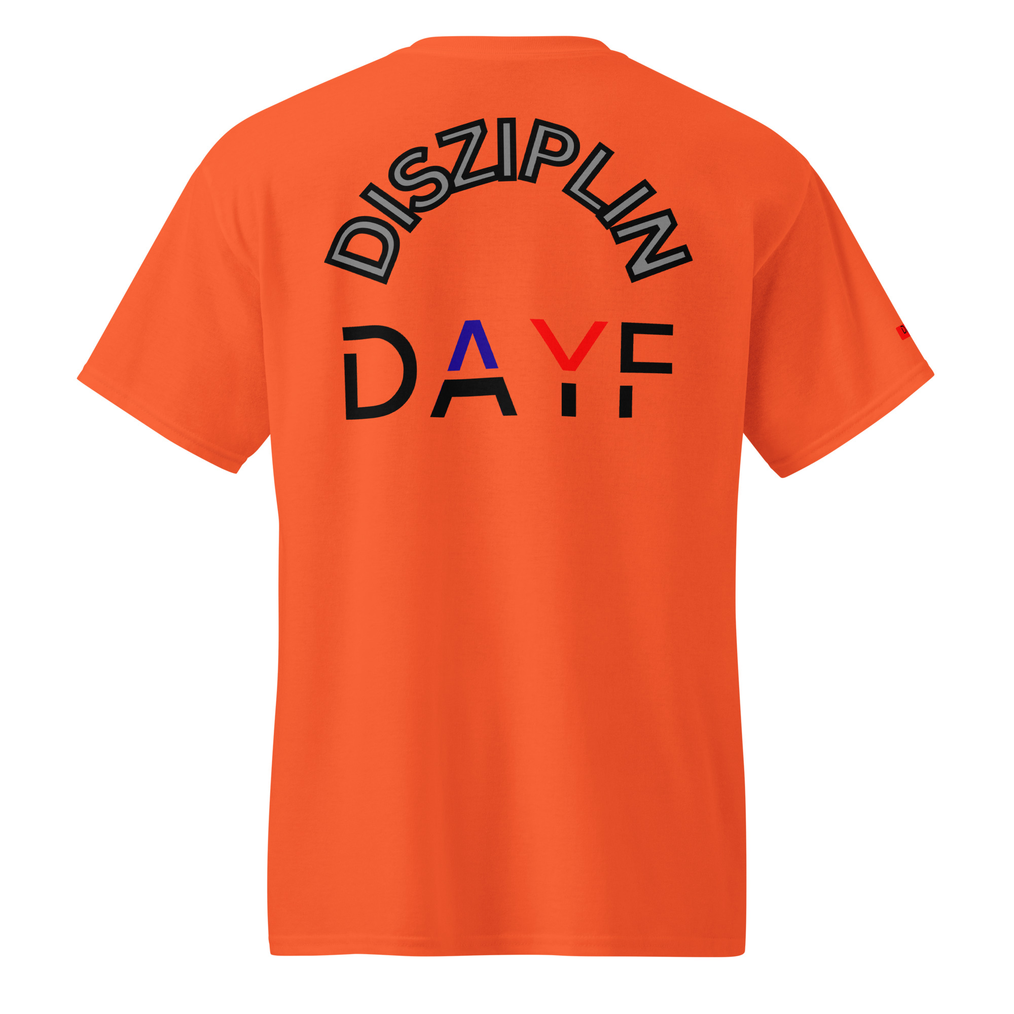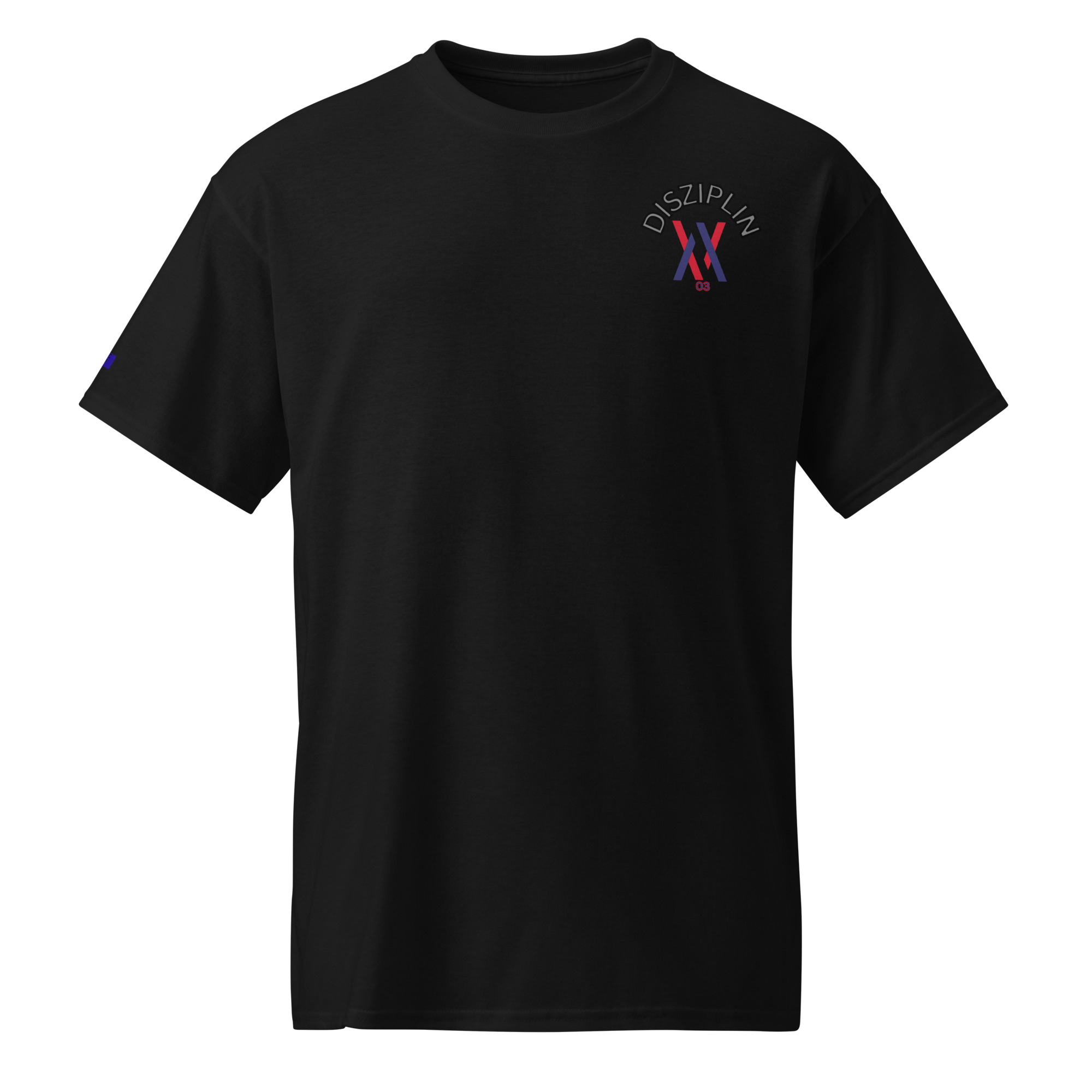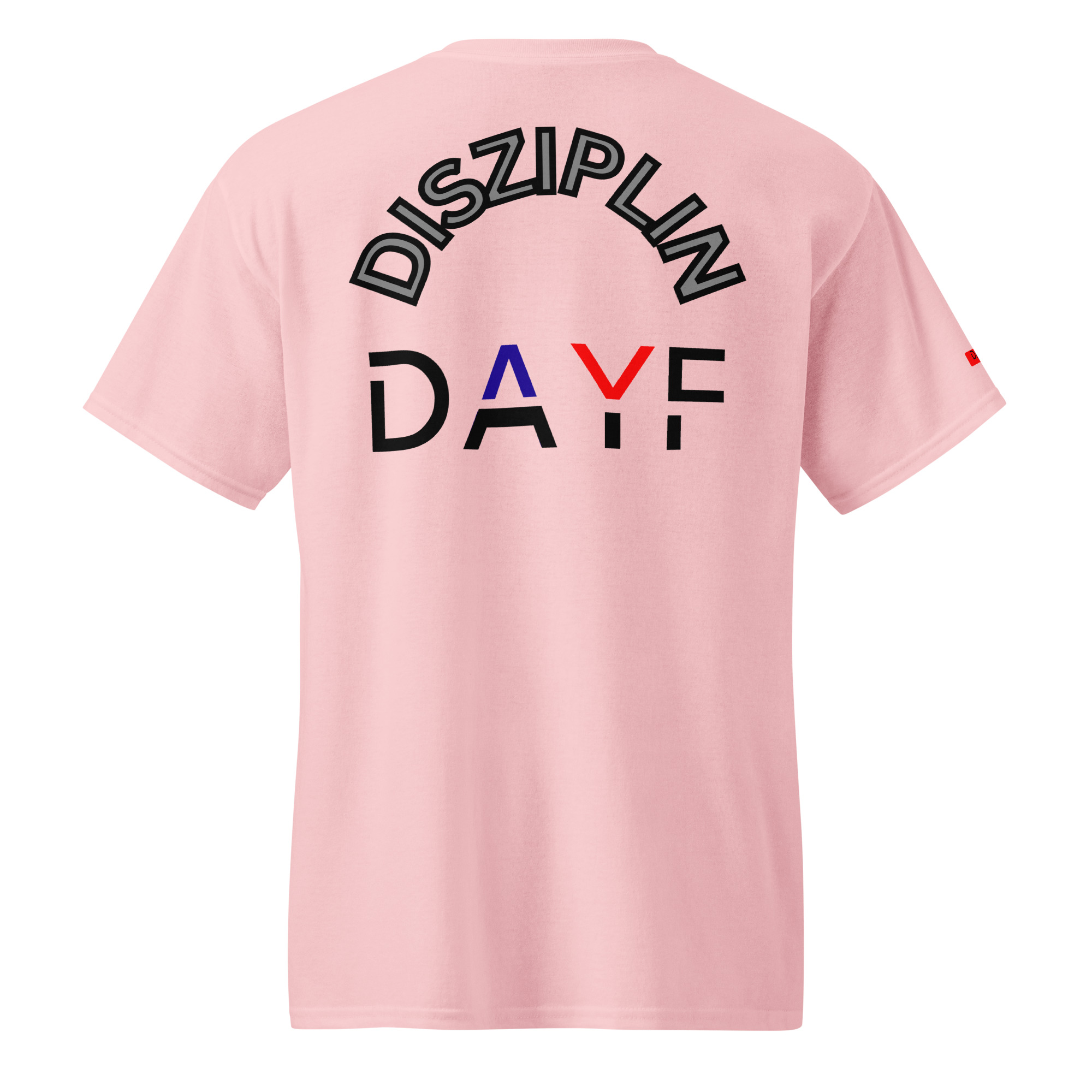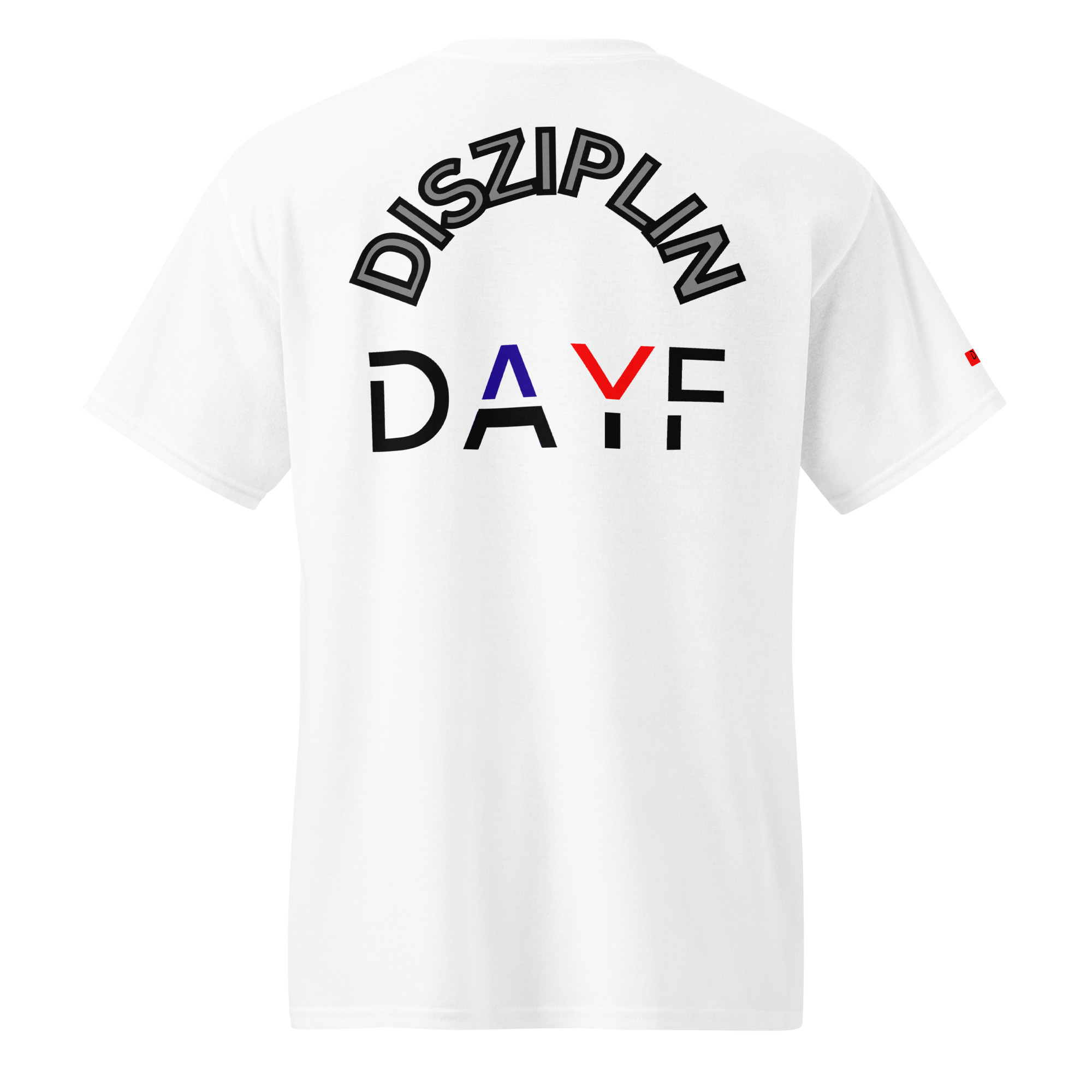Das No 03 Shirt zeigt das Wort Disziplin vorne und hinten.