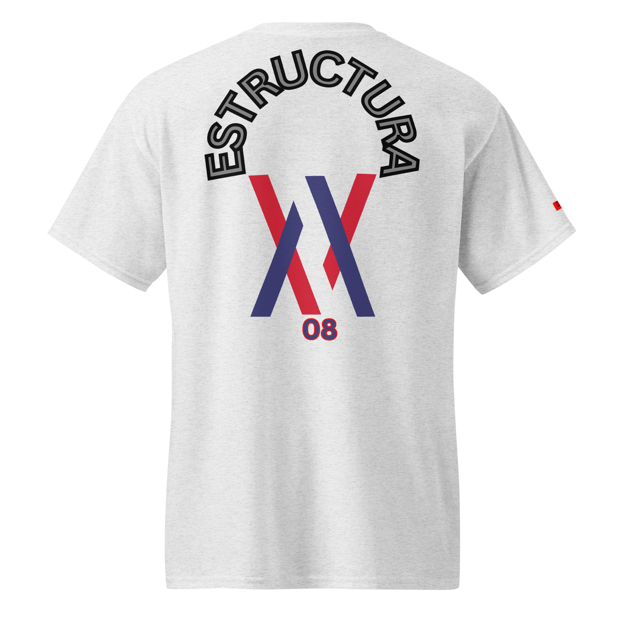 La camiseta No 08 presenta la palabra Estructura en la zona trasera. Diseño reducido, lectura inmediata y composición equilibrada. Pensada para uso diario con una presencia sobria y consistente.