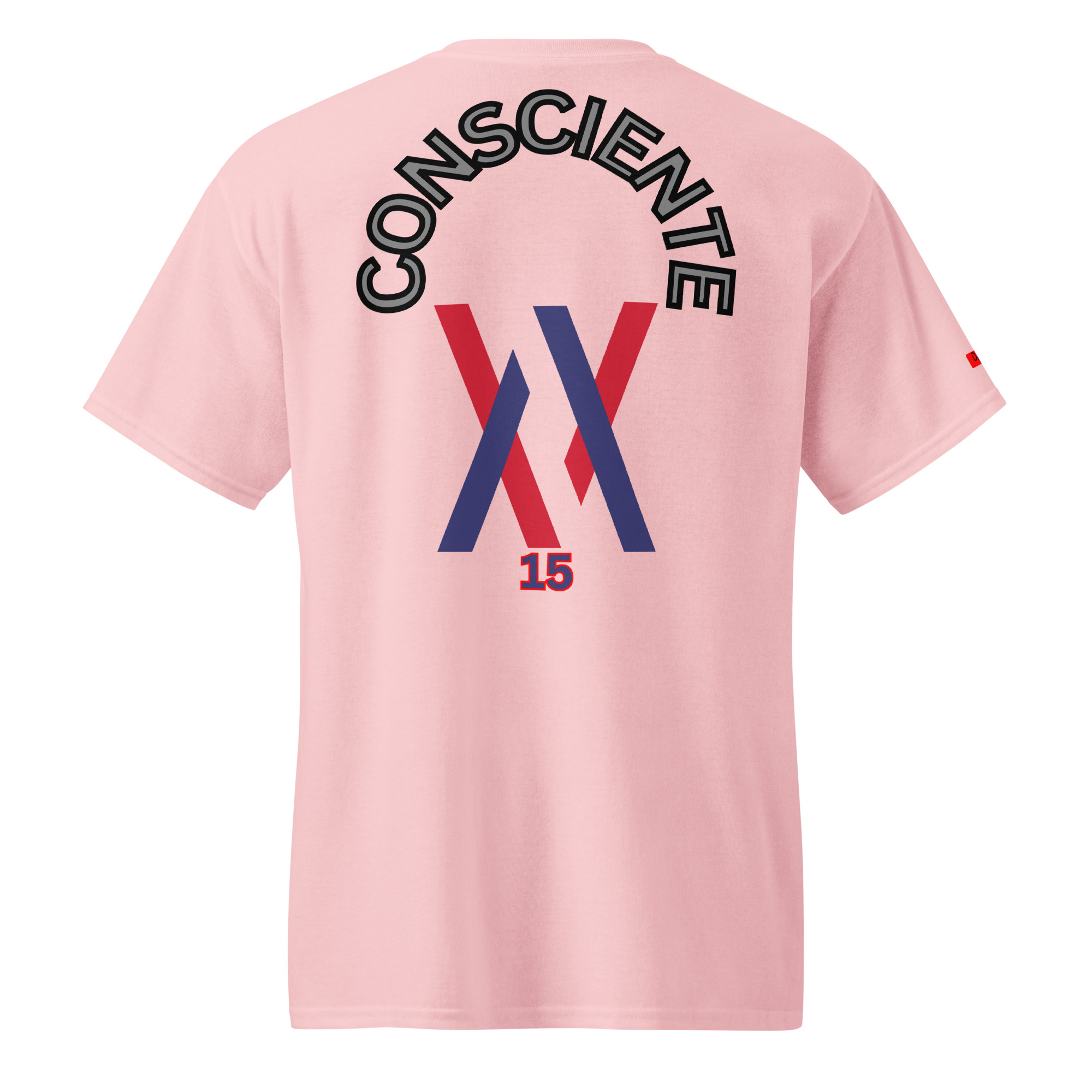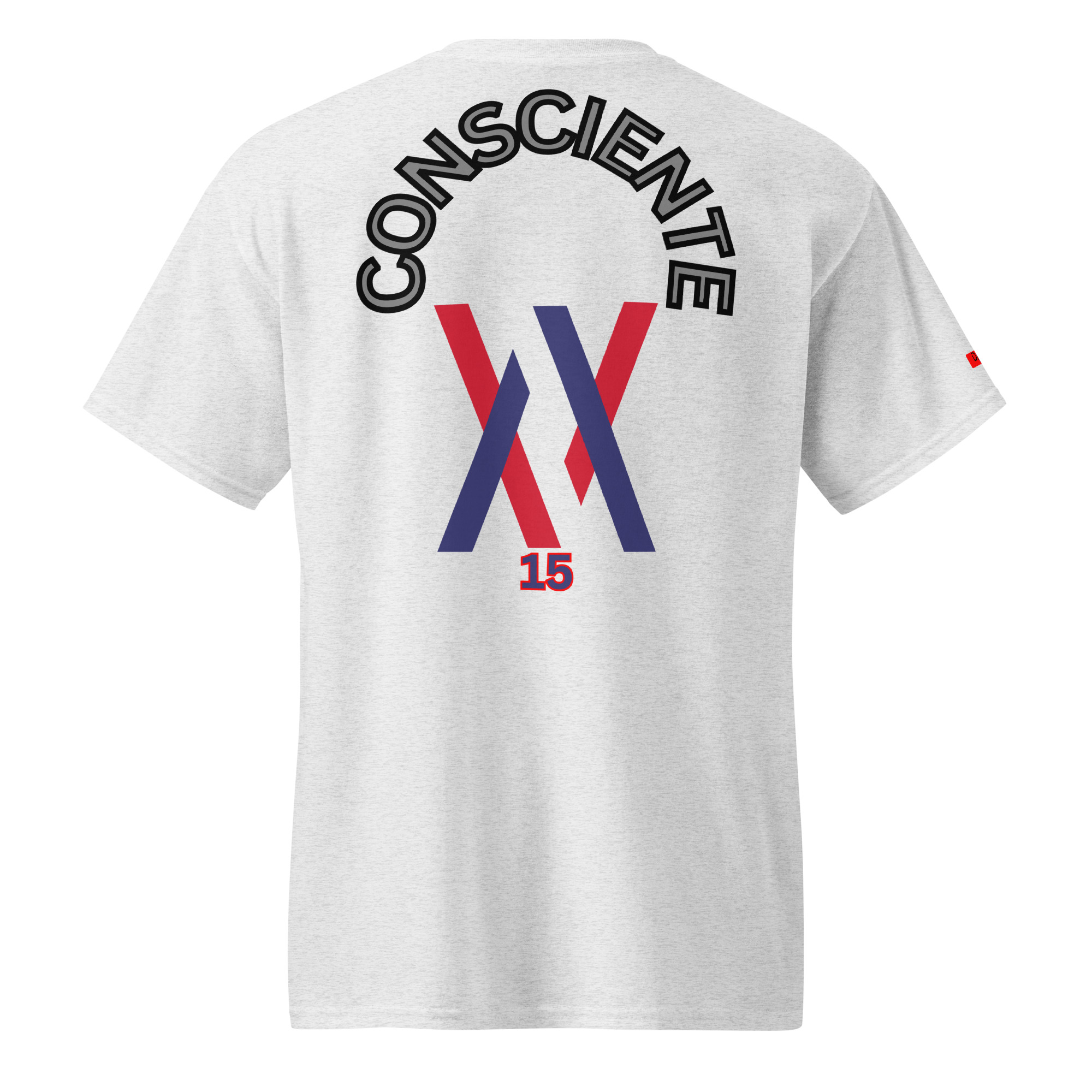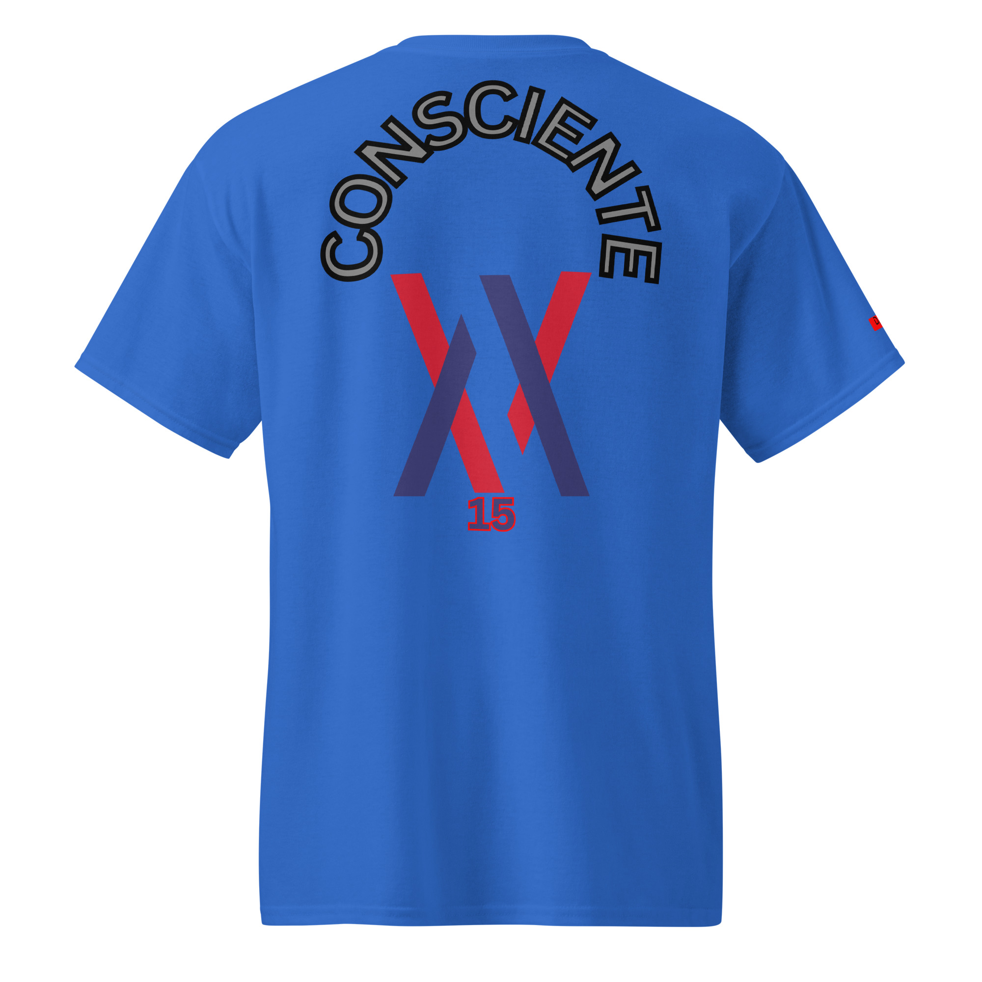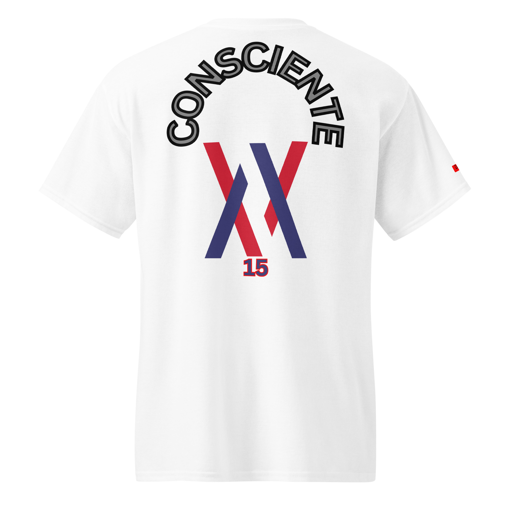 La camiseta No 15 muestra la palabra Consciente en la zona trasera. Diseño limpio, lectura inmediata y estructura visual estable. Pensada para uso diario con una apariencia sobria y definida.