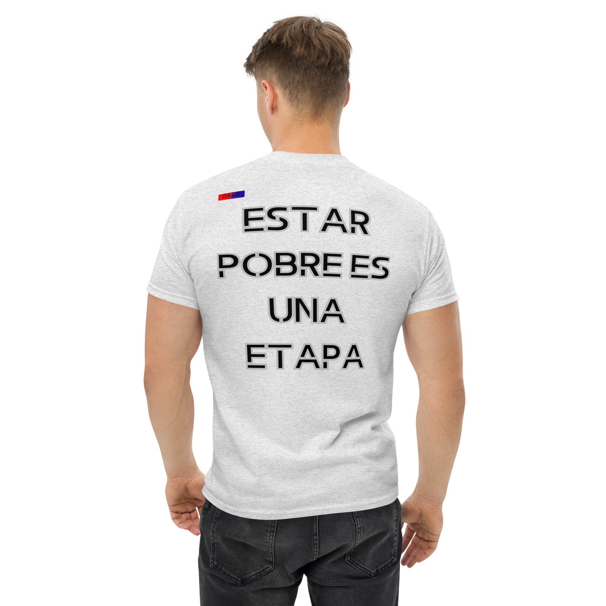 Elijo esta Classic Tee porque Estar Pobre Es Una Etapa en la espalda muestra mi actitud real sin drama. Directo tranquilo claro con budget dinero kontrolle claridad y sparen como base diaria.