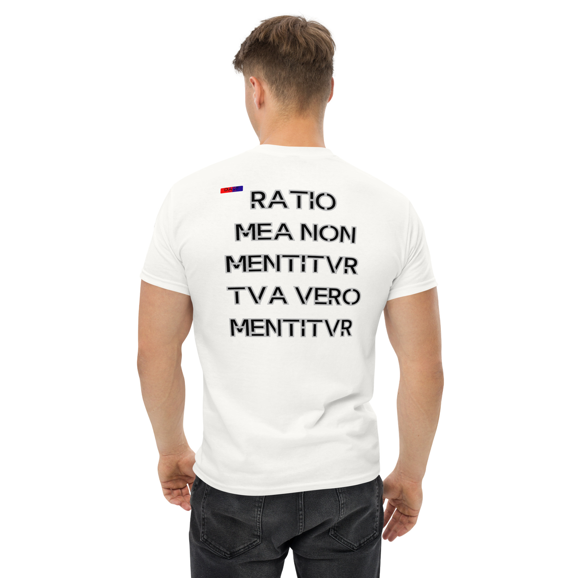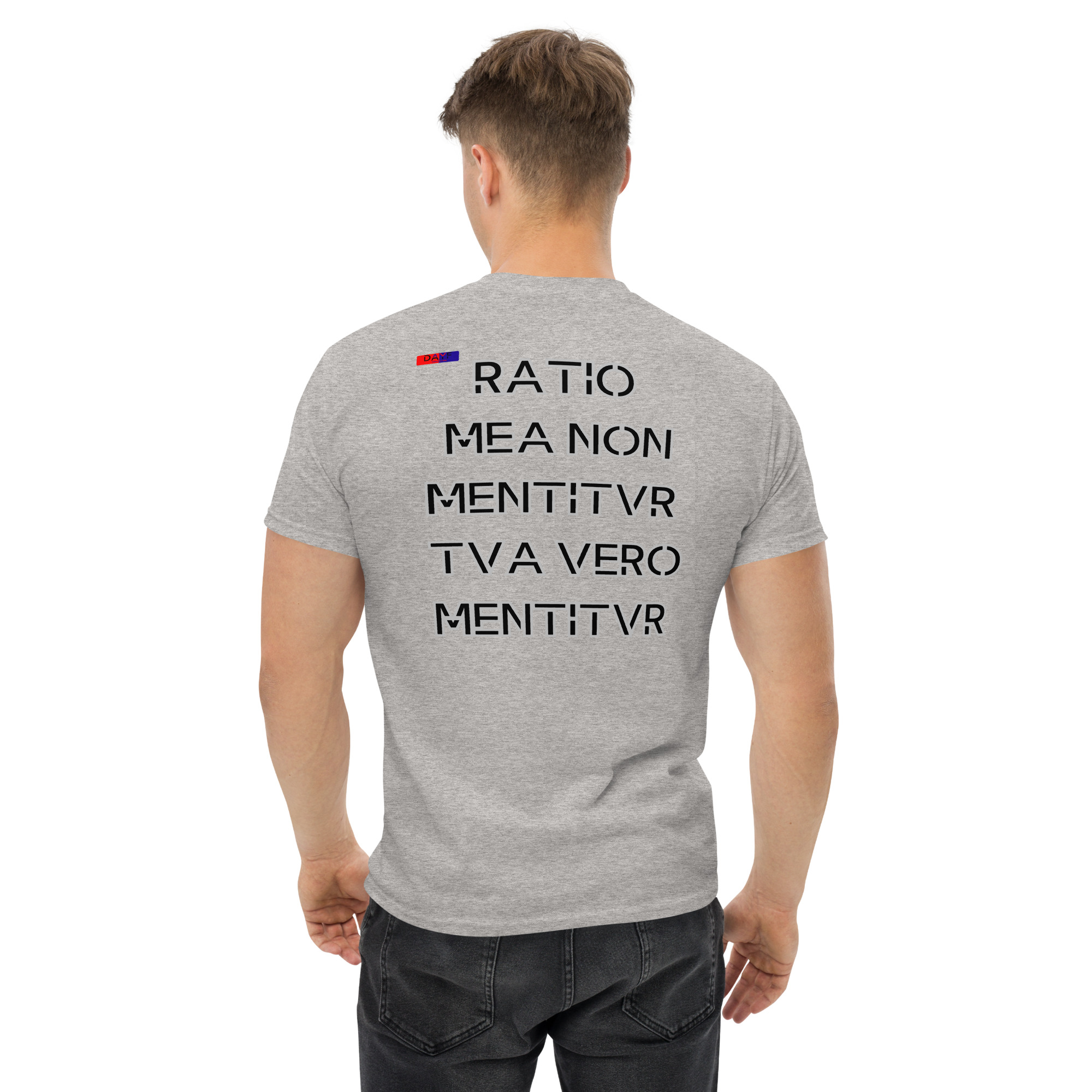 I choose this Classic Tee because RATIO MEA NON MENTITVR TVA VERO MENTITVR on the back reflects how I think. Honest simple grounded with budget money control clarity and saving shaping my routine. A clean back print that stays real without noise.