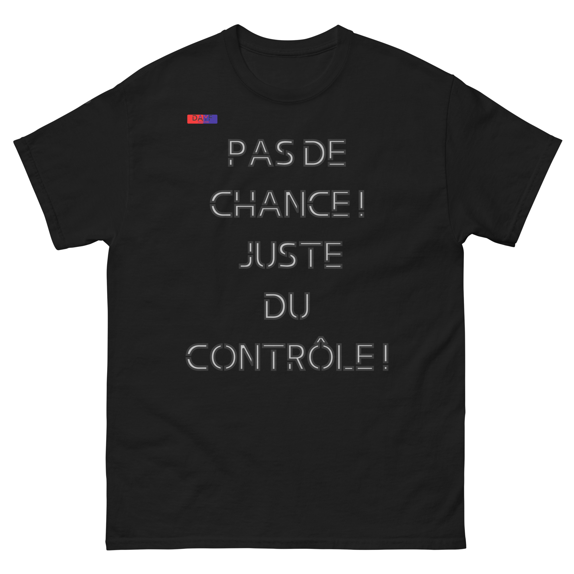 Je choisis ce t shirt parce que PAS DE CHANCE JUSTE DU CONTROLE montre ma facon davancer. Honnete calme clair avec budget argent controle clarte et economie. Une piece propre qui reste vraie et directe.