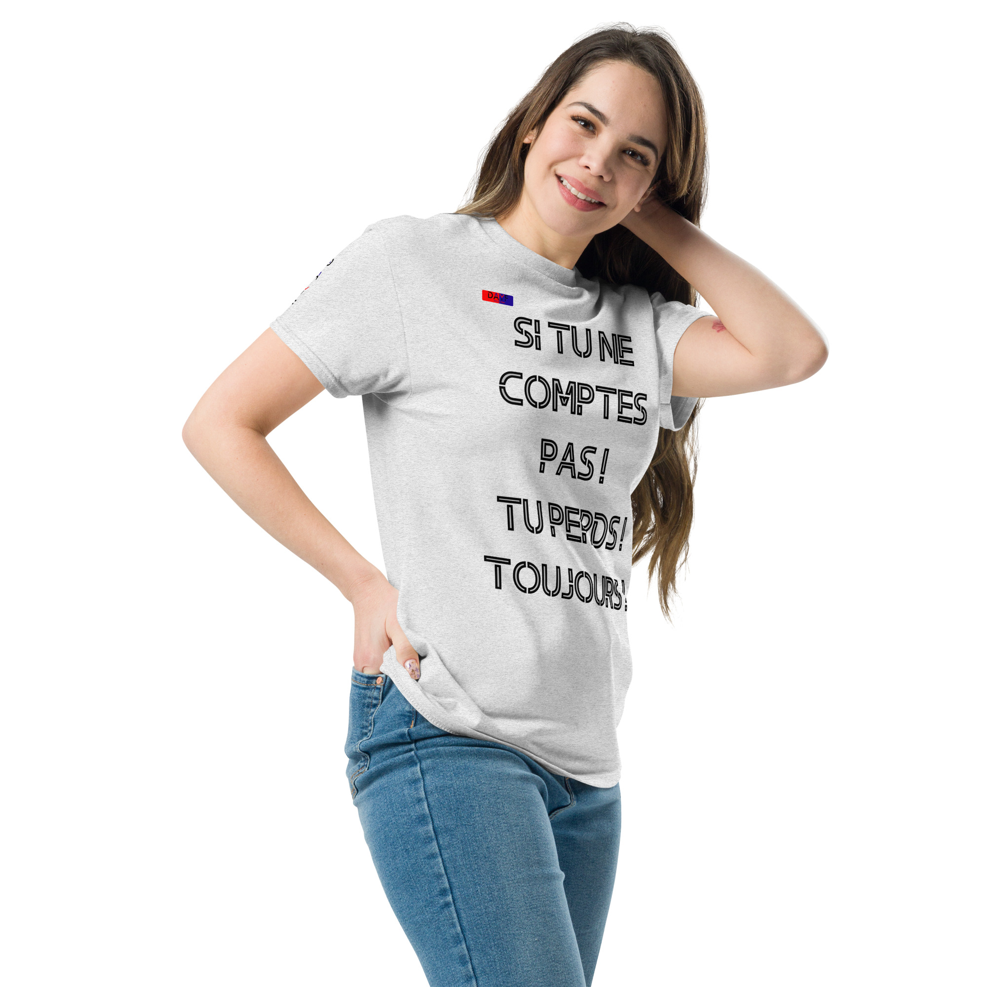 Le t shirt classique unisexe en coton 100 pour cent te donne une tenue plus structurée. Il tombe bien reste net sur les bords et se combine facilement avec des looks streetwear superposés. En plus il est très tendance en ce moment