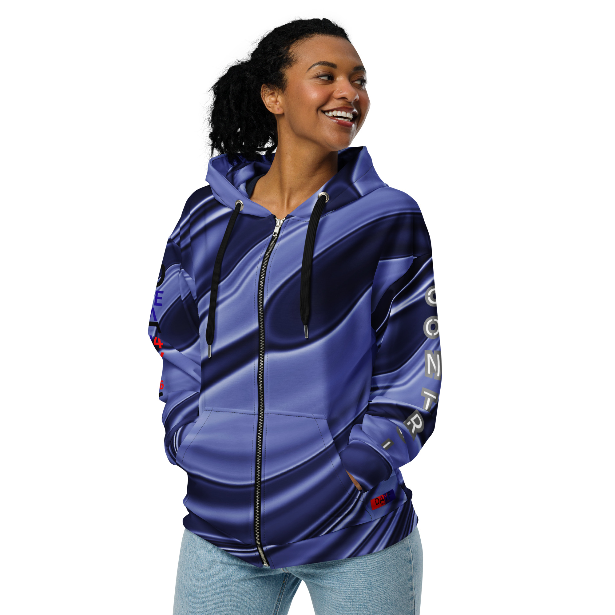 Lerne den Zip-Hoodie kennen – ein Must-have für den Alltag. Hergestellt aus 95 % recyceltem Polyester verbindet er Nachhaltigkeit mit Stil. Innen wie außen weich, bietet dieser Unisex-Hoodie eine lockere Passform mit überschnittenen Schultern. Langlebig designt, hält er dich über Jahre hinweg warm und stylisch.