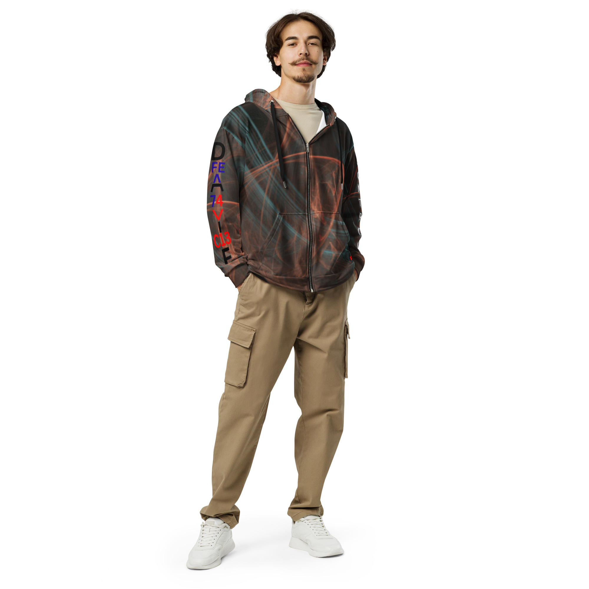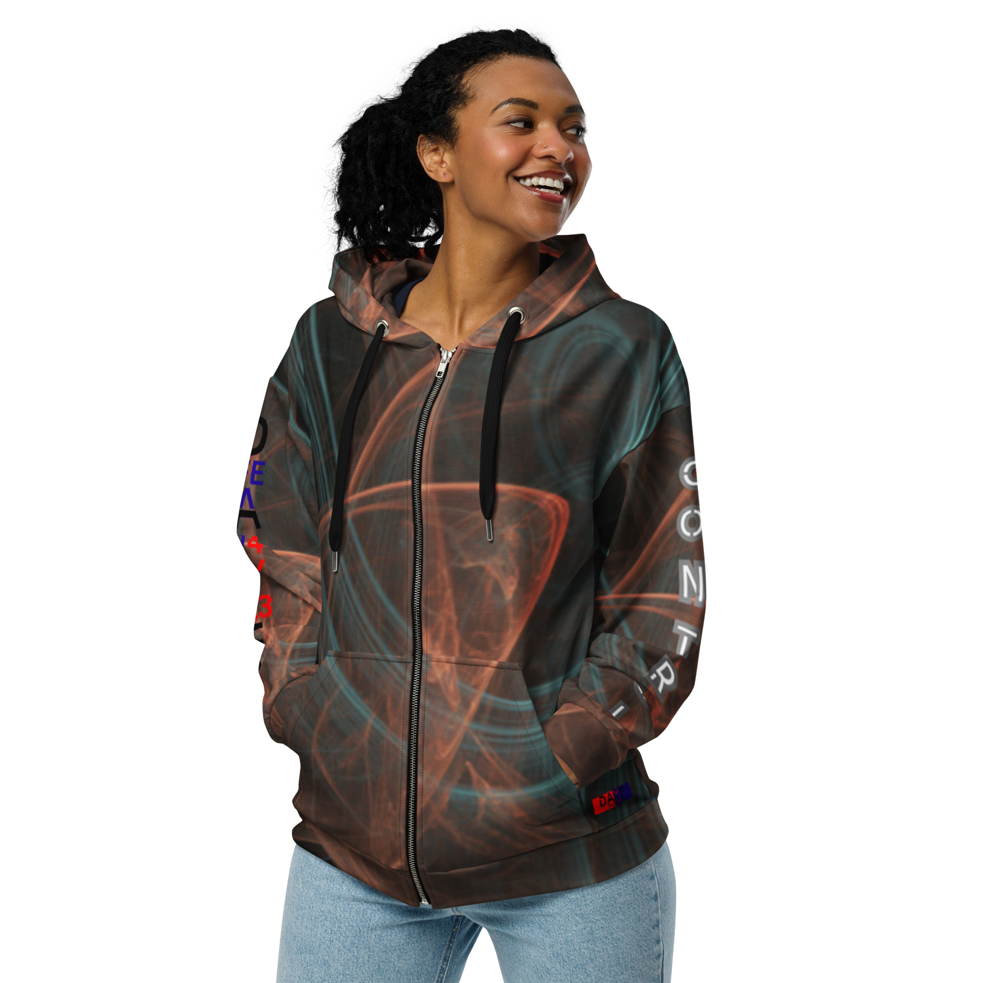 Je choisis ce sweat zippe parce que Control montre comment je garde ma route quand tout tente de me disperser. Calme vrai direct avec controle argent clarte et economie comme point solide. Une piece allover qui tient quand la journee frappe sans pause.