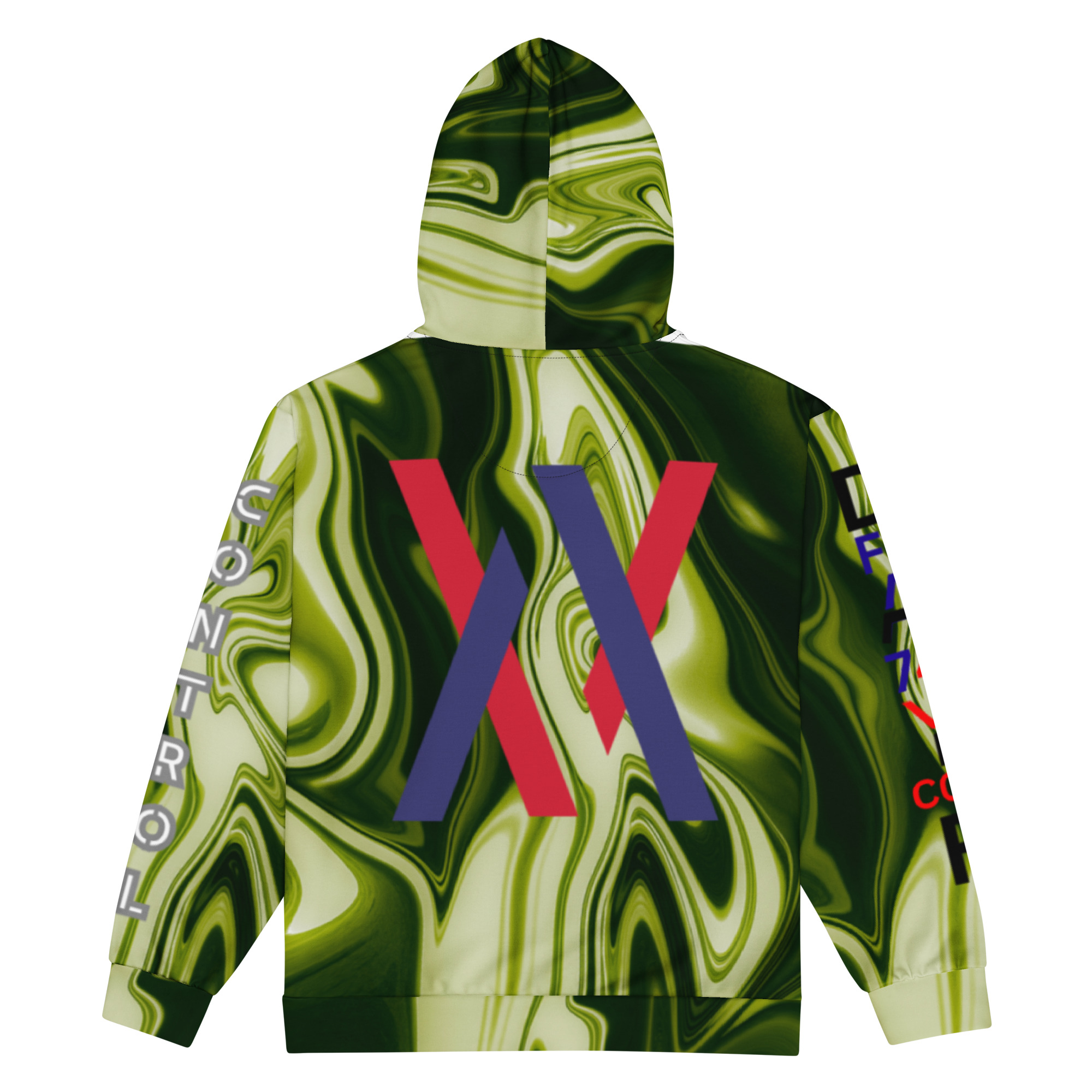 Je choisis ce sweat zippe parce que Control montre comment je garde ma direction quand tout devient bruyant. Calme vrai direct avec controle argent clarte et economie comme ligne. Une piece allover qui reste stable quand la pression monte.