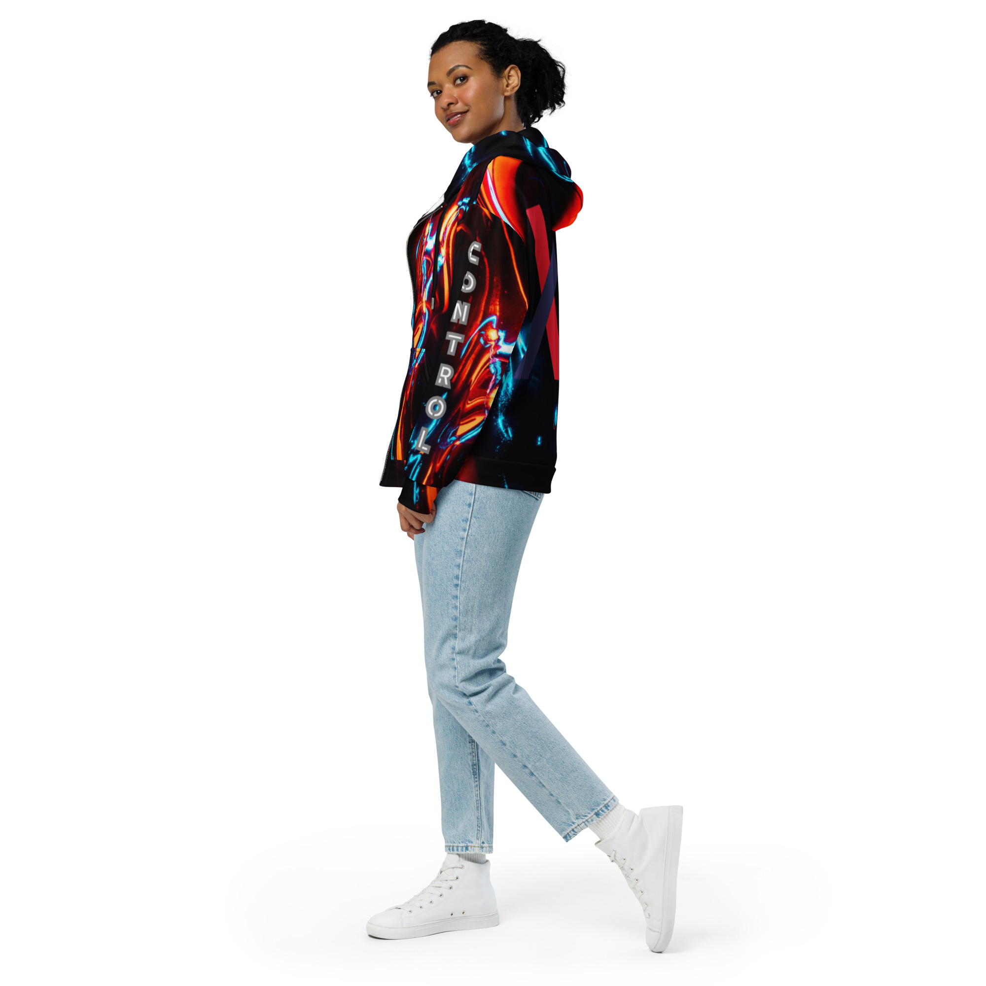 Je choisis ce sweat zippe parce que Control montre comment je garde ma base quand tout tente de me faire perdre ma tete. Calme vrai direct avec controle argent clarte et economie comme force. Une piece allover qui tient quand la journee pousse trop loin.