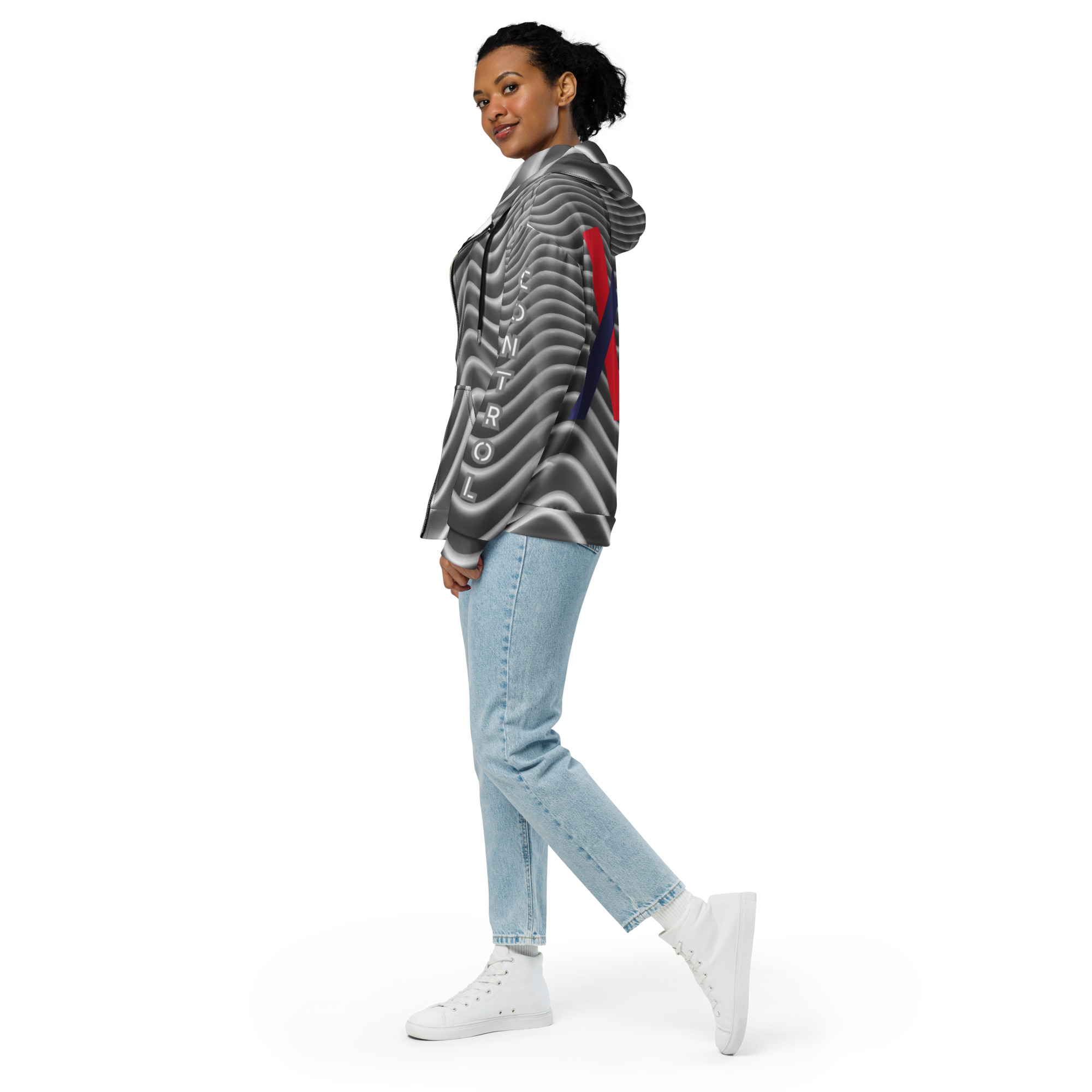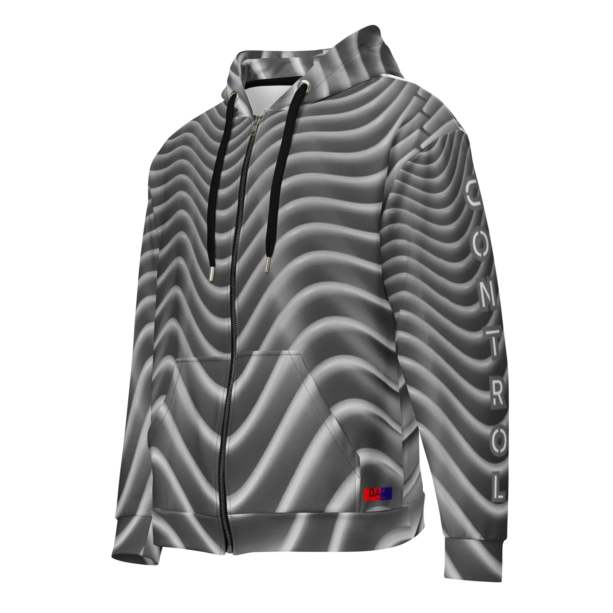 Je choisis ce sweat zippe parce que Control montre comment je garde ma base quand tout cherche a me faire perdre le fil. Calme vrai direct avec controle argent clarte et economie comme support. Une piece allover qui me tient quand la journee devient trop lourde.